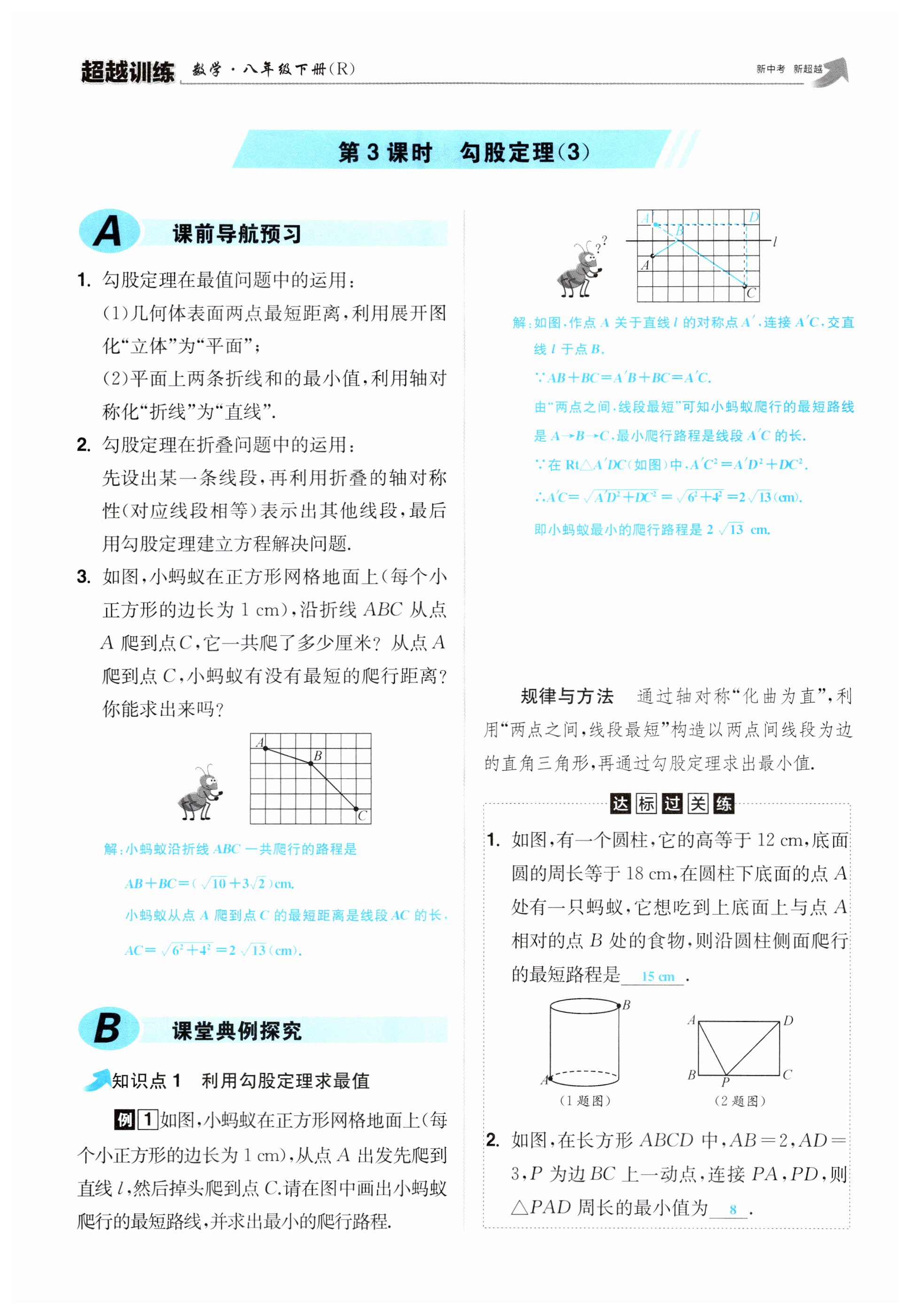 注:目前有些书本章节名称可能整理的还不是很完善,但都是按照顺序排列的,请同学们按照顺序仔细查找。练习册 2024年超越训练八年级数学下册人教版 答案主要是用来给同学们做完题方便对答案用的,请勿直接抄袭。