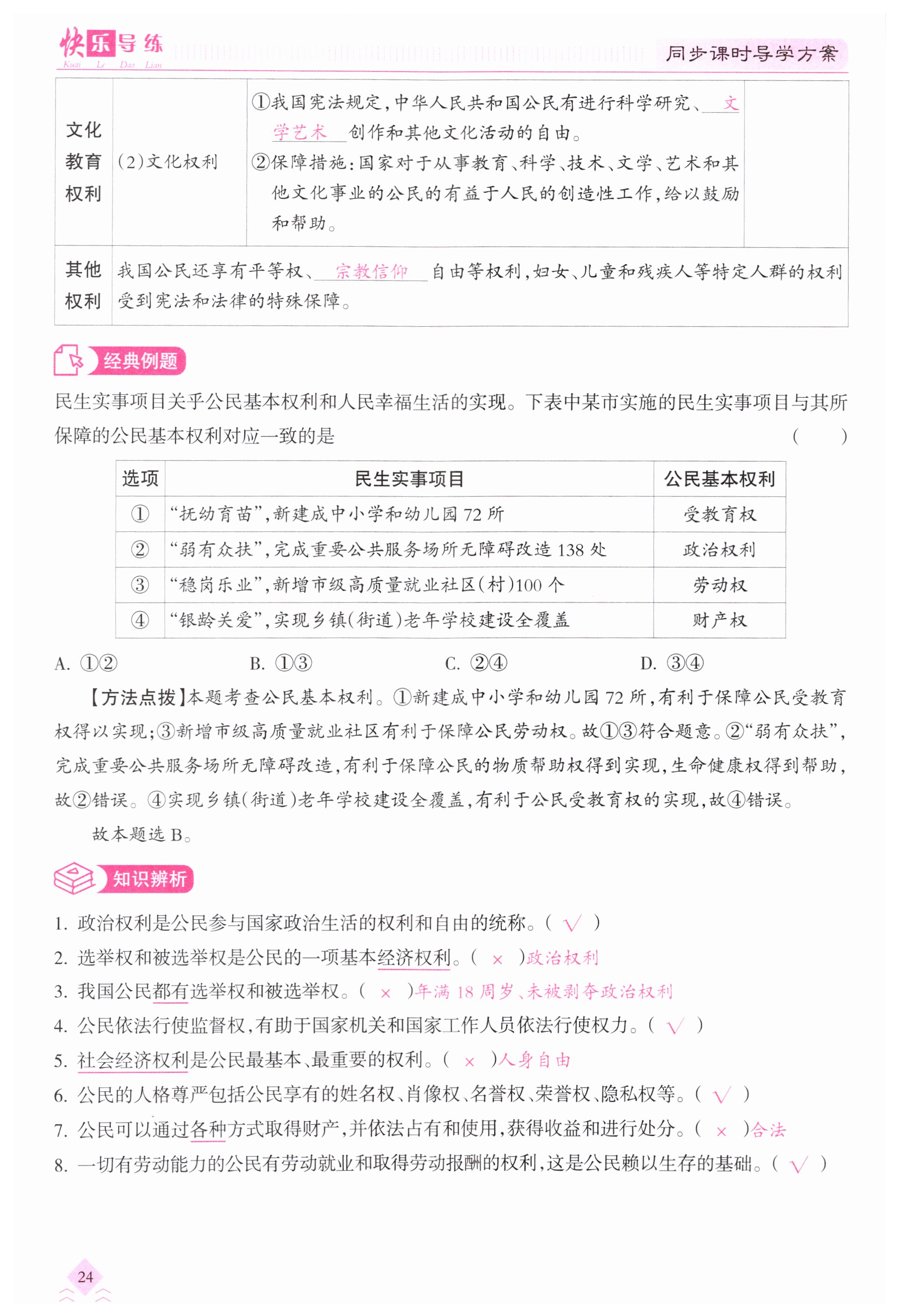 注:目前有些书本章节名称可能整理的还不是很完善,但都是按照顺序排列的,请同学们按照顺序仔细查找。练习册 2024年快乐导练八年级道德与法治下册人教版 答案主要是用来给同学们做完题方便对答案用的,请勿直接抄袭。