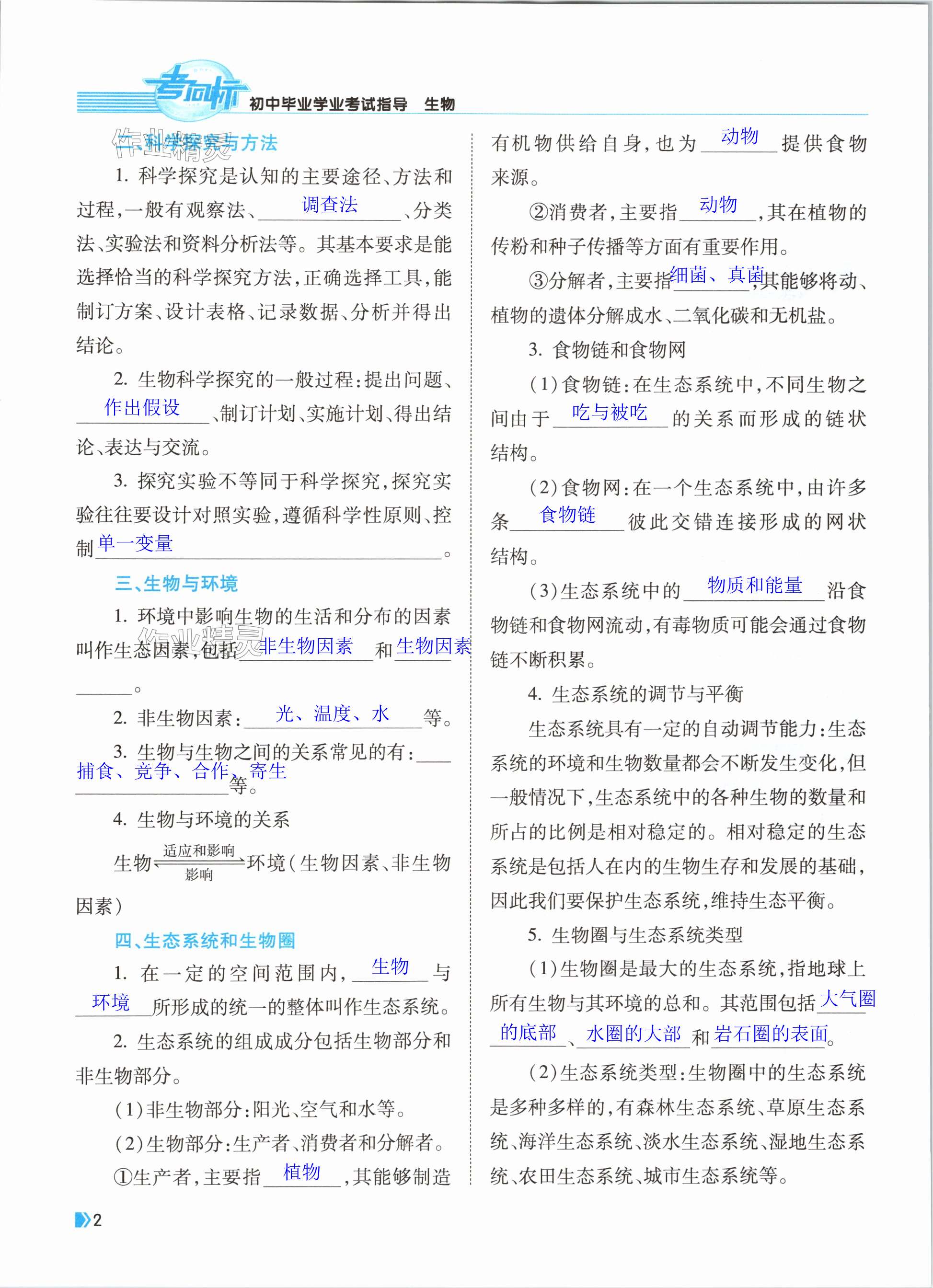 注:目前有些书本章节名称可能整理的还不是很完善,但都是按照顺序排列的,请同学们按照顺序仔细查找。练习册 2024年考向标初中毕业学业考试指导九年级生物岳阳专版 答案主要是用来给同学们做完题方便对答案用的,请勿直接抄袭。