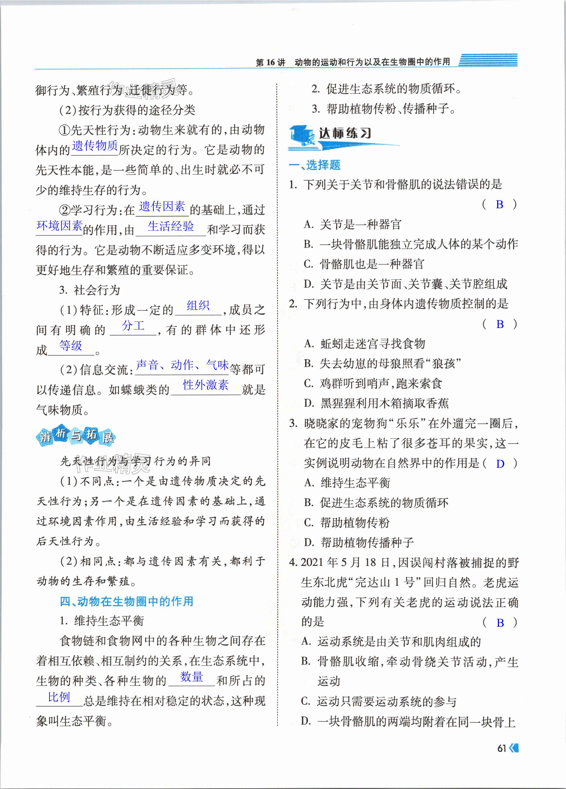 注:目前有些书本章节名称可能整理的还不是很完善,但都是按照顺序排列的,请同学们按照顺序仔细查找。练习册 2024年考向标初中毕业学业考试指导九年级生物岳阳专版 答案主要是用来给同学们做完题方便对答案用的,请勿直接抄袭。