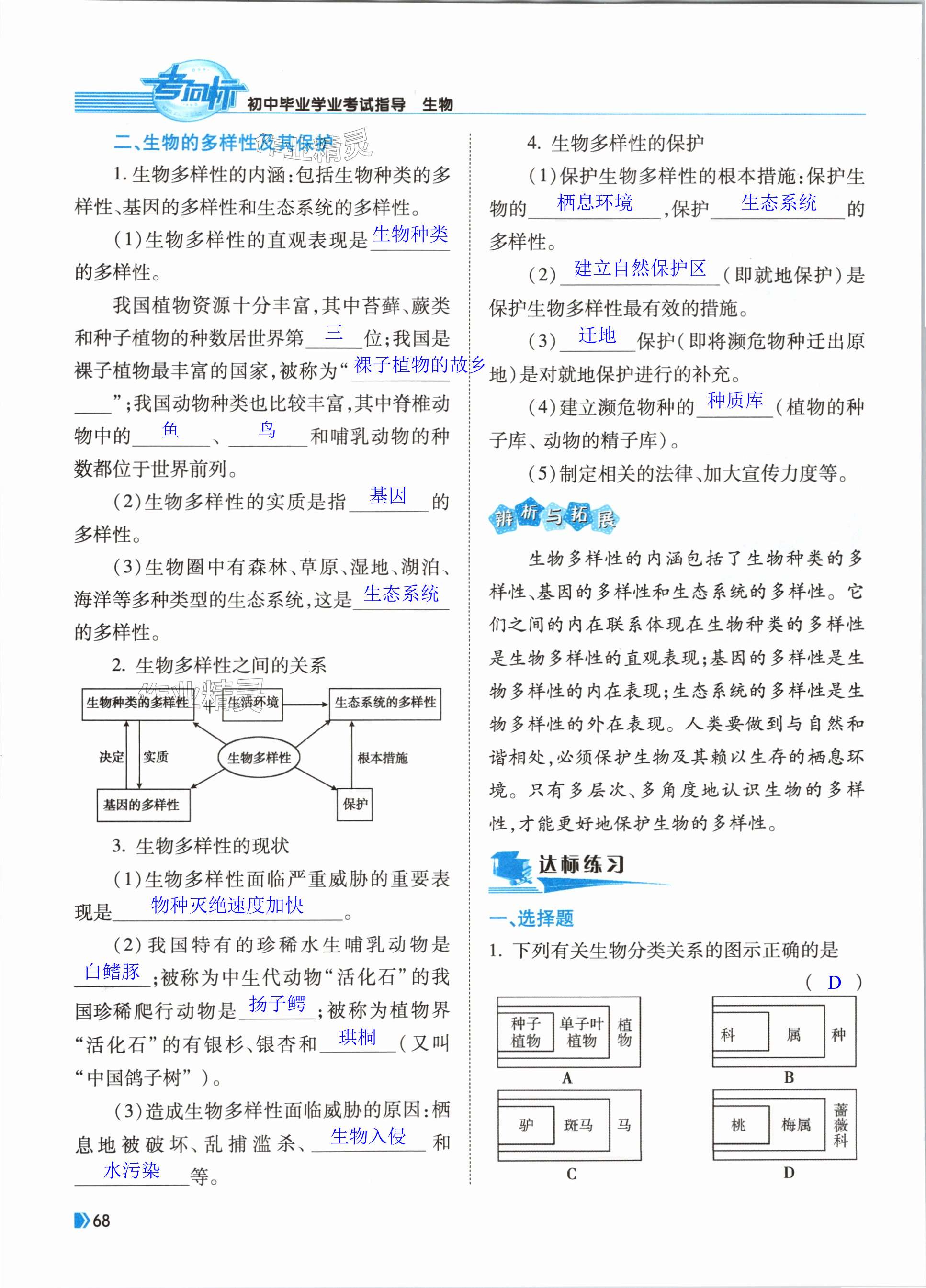 注:目前有些书本章节名称可能整理的还不是很完善,但都是按照顺序排列的,请同学们按照顺序仔细查找。练习册 2024年考向标初中毕业学业考试指导九年级生物岳阳专版 答案主要是用来给同学们做完题方便对答案用的,请勿直接抄袭。