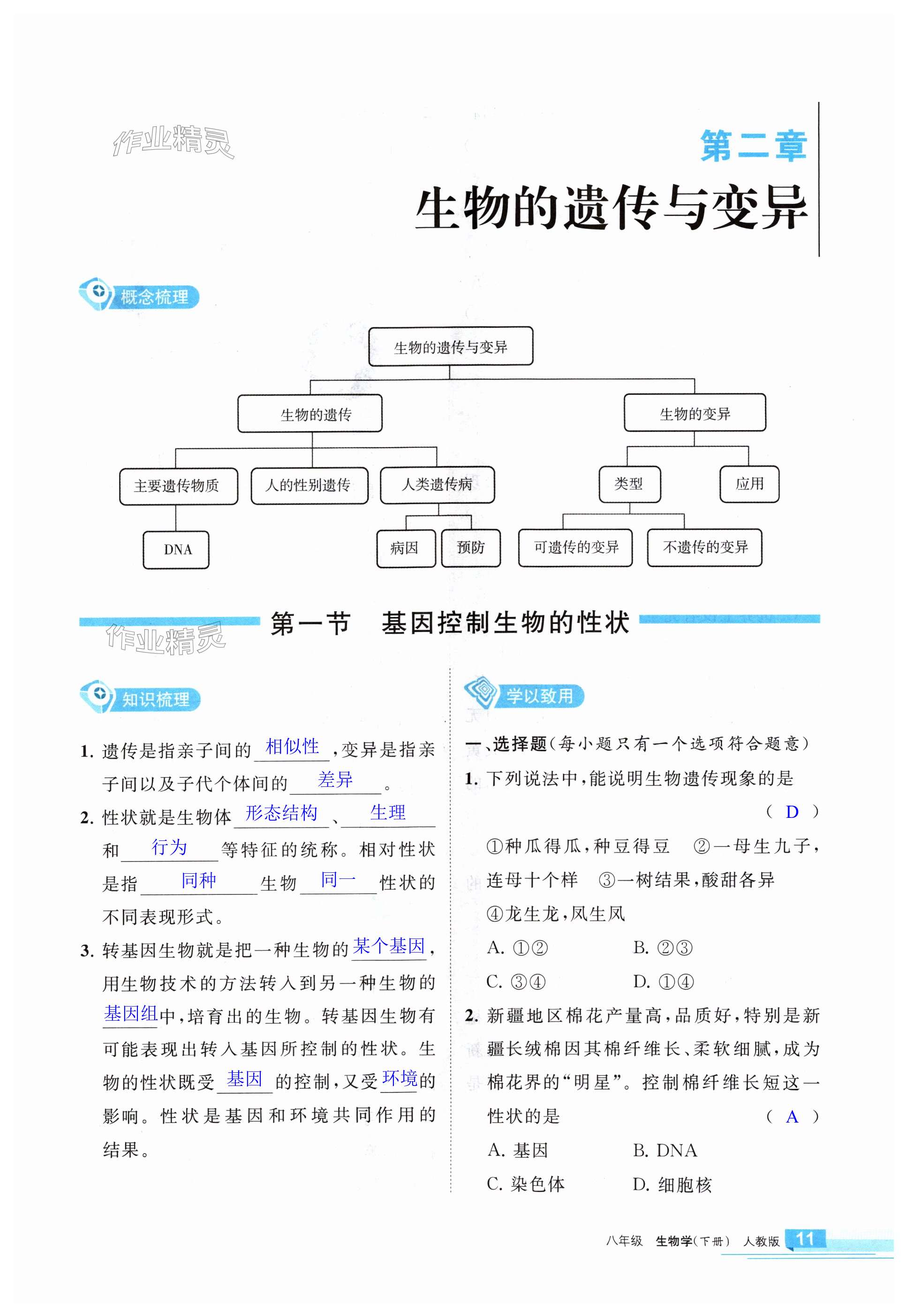 注:目前有些书本章节名称可能整理的还不是很完善,但都是按照顺序排列的,请同学们按照顺序仔细查找。练习册 2024年学习之友八年级生物下册人教版 答案主要是用来给同学们做完题方便对答案用的,请勿直接抄袭。