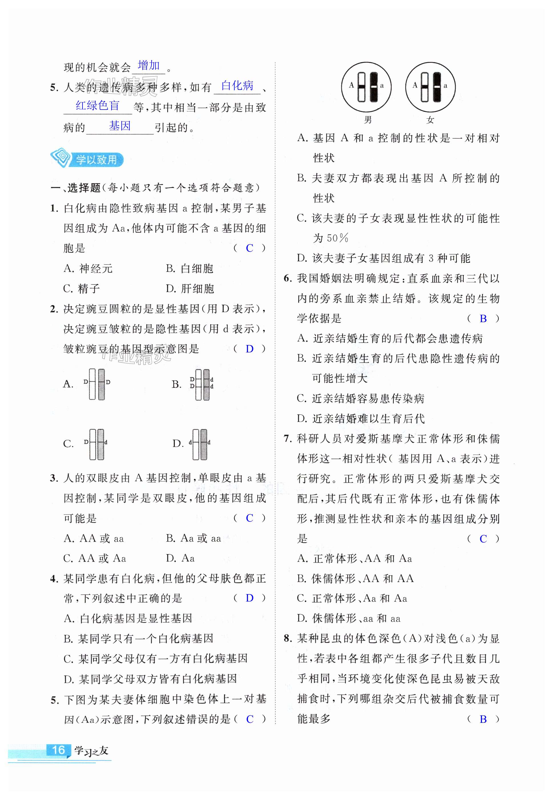 注:目前有些书本章节名称可能整理的还不是很完善,但都是按照顺序排列的,请同学们按照顺序仔细查找。练习册 2024年学习之友八年级生物下册人教版 答案主要是用来给同学们做完题方便对答案用的,请勿直接抄袭。