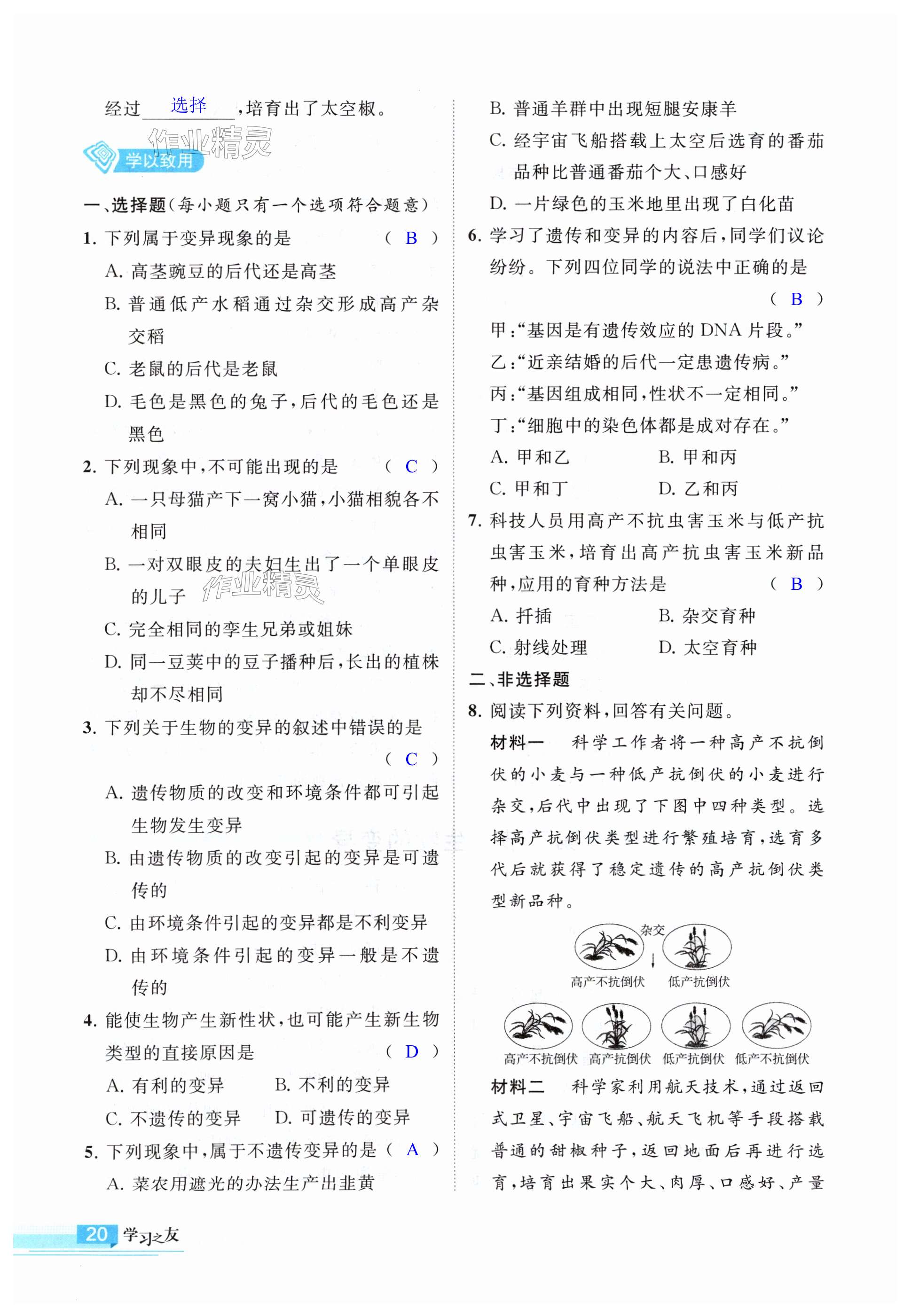 注:目前有些书本章节名称可能整理的还不是很完善,但都是按照顺序排列的,请同学们按照顺序仔细查找。练习册 2024年学习之友八年级生物下册人教版 答案主要是用来给同学们做完题方便对答案用的,请勿直接抄袭。