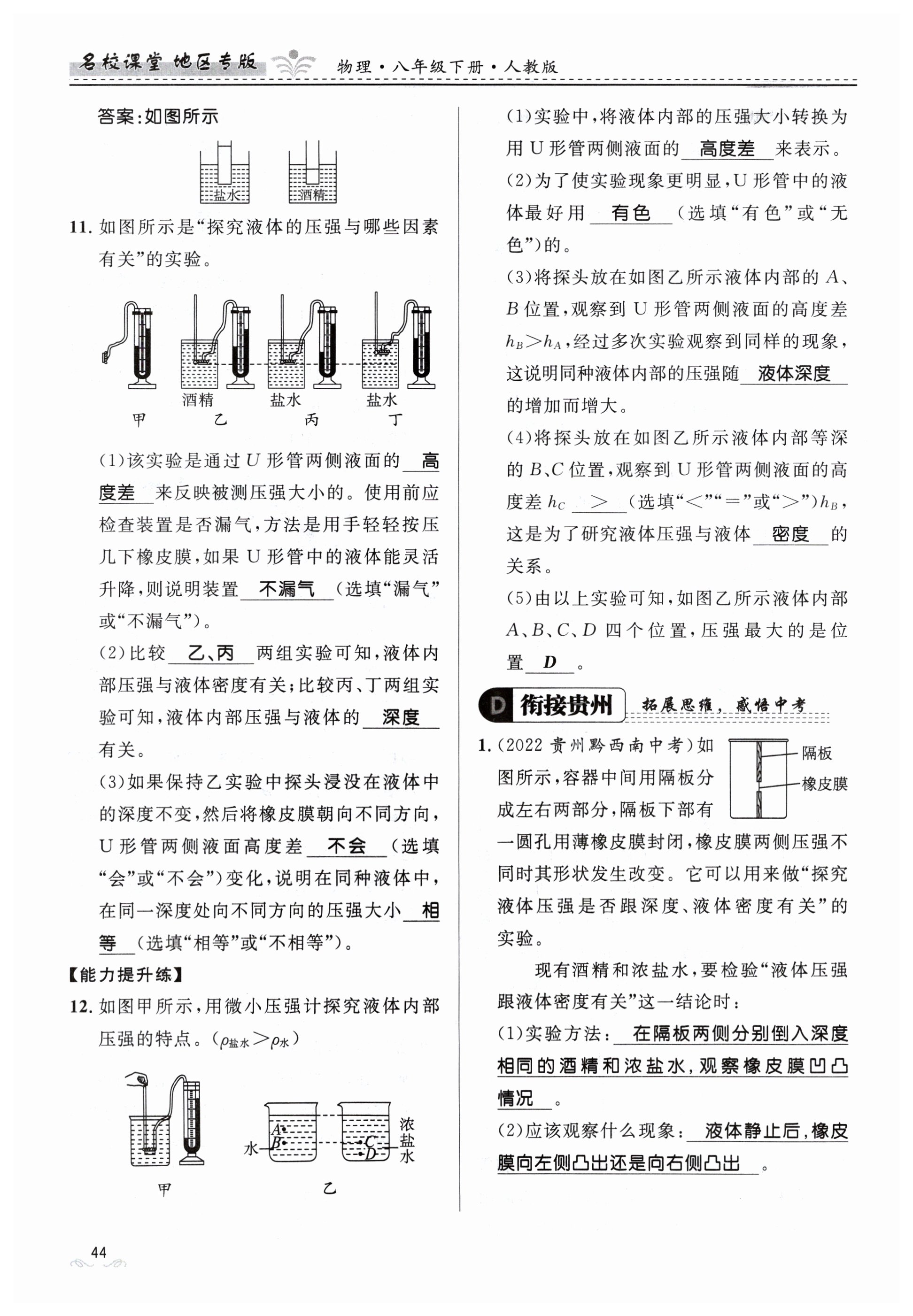 注:目前有些书本章节名称可能整理的还不是很完善,但都是按照顺序排列的,请同学们按照顺序仔细查找。练习册 2024年名校课堂八年级物理下册人教版贵州人民出版社 答案主要是用来给同学们做完题方便对答案用的,请勿直接抄袭。