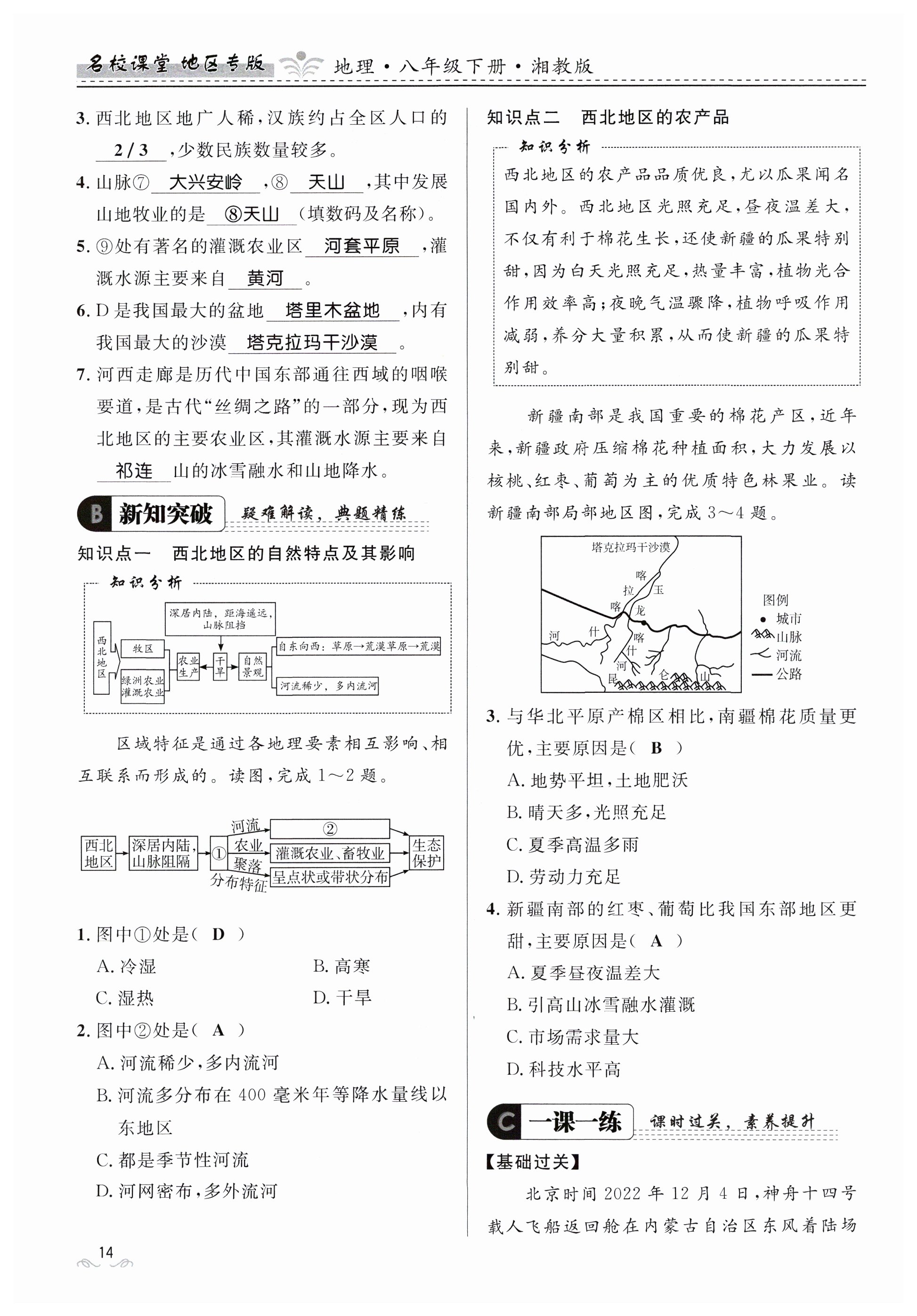 2024年名校课堂贵州人民出版社八年级地理下册湘教版