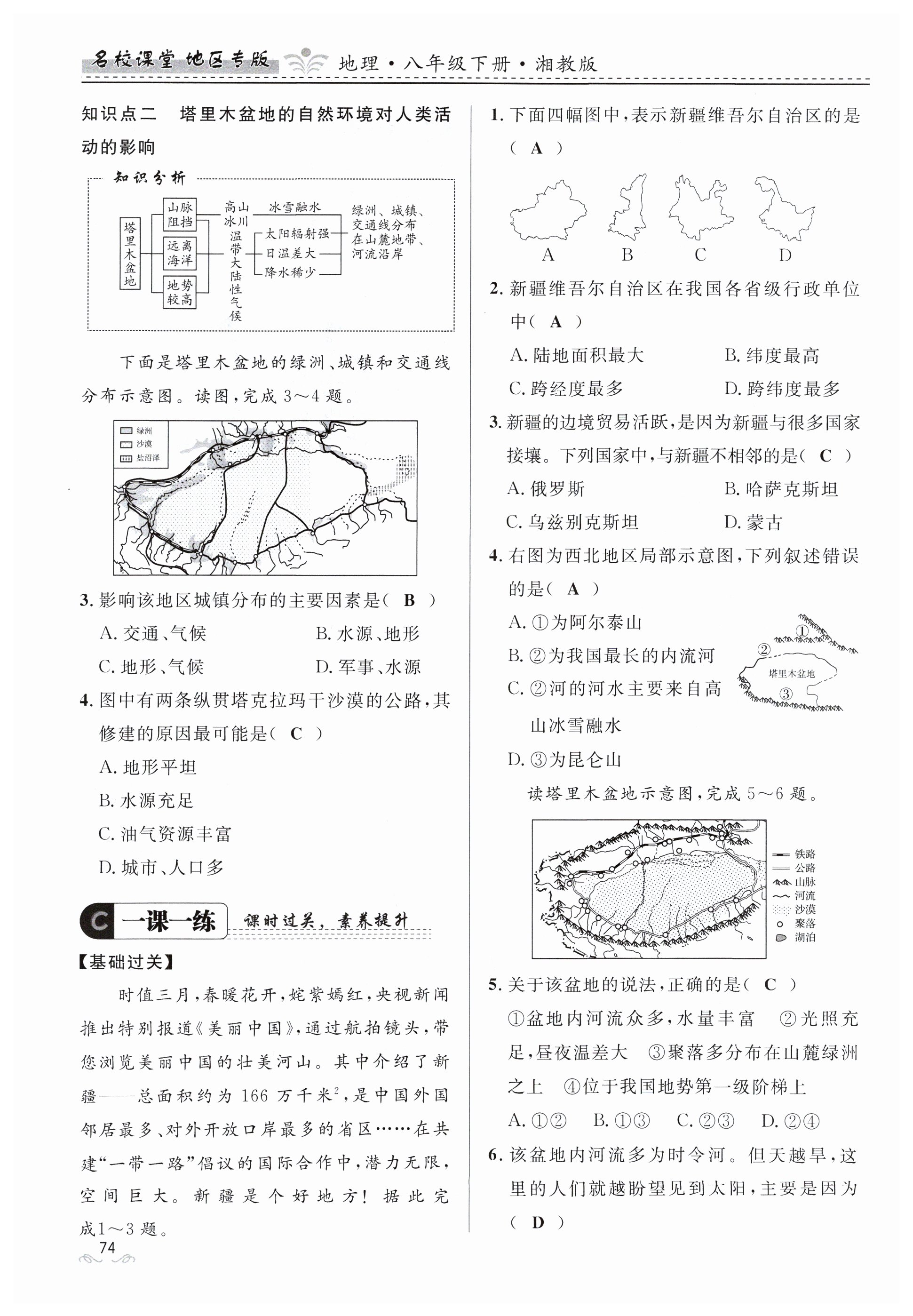2024年名校课堂贵州人民出版社八年级地理下册湘教版