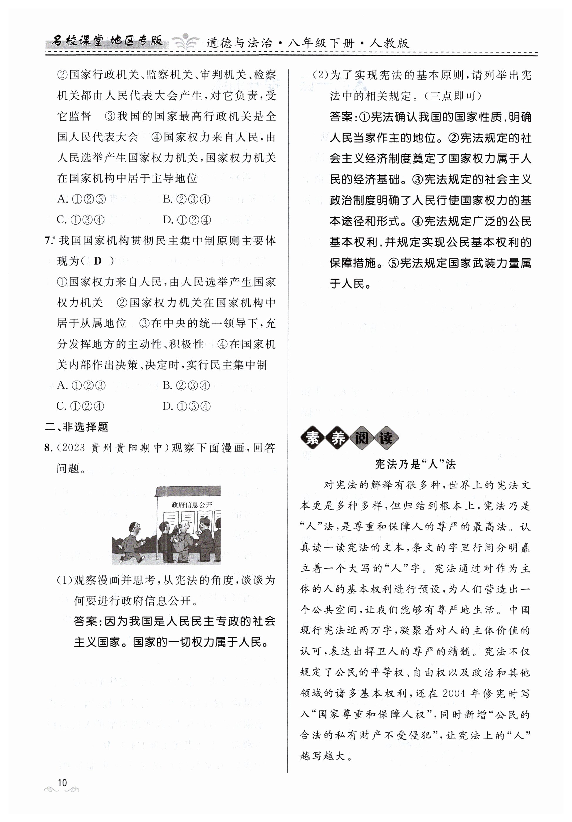 注:目前有些书本章节名称可能整理的还不是很完善,但都是按照顺序排列的,请同学们按照顺序仔细查找。练习册 2024年名校课堂贵州人民出版社八年级道德与法治下册人教版 答案主要是用来给同学们做完题方便对答案用的,请勿直接抄袭。
