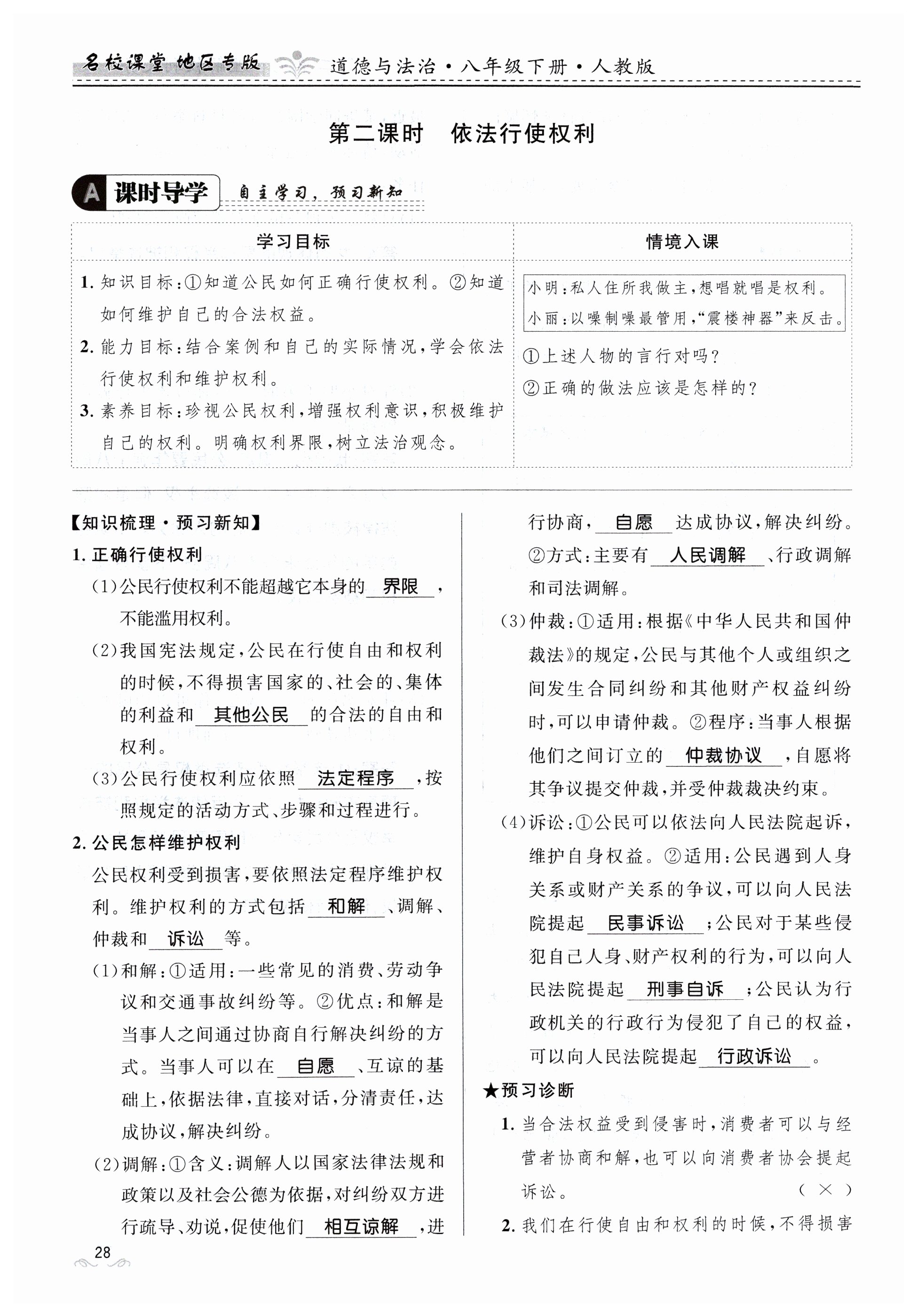 2024年名校课堂贵州人民出版社八年级道德与法治下册人教版