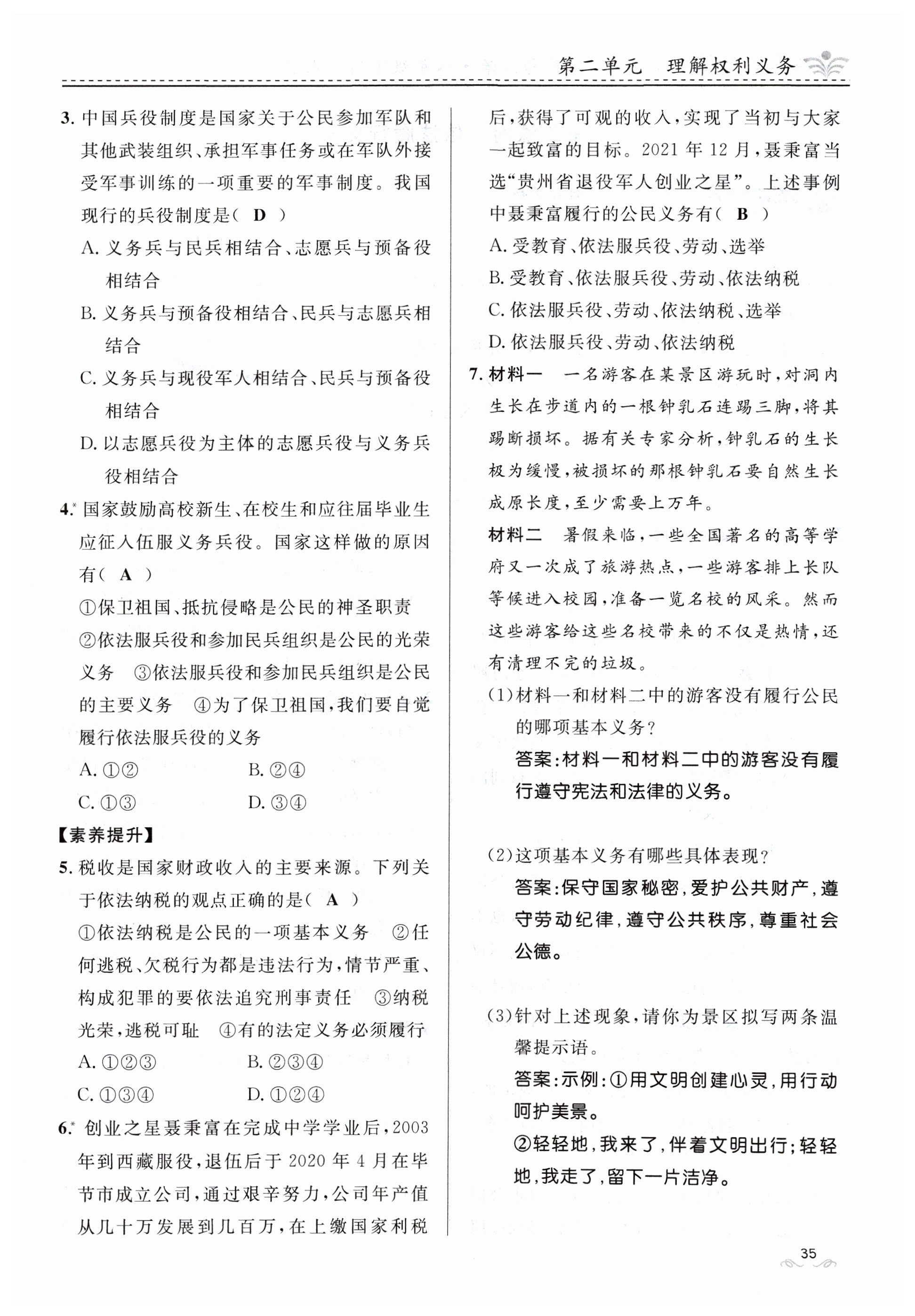 注:目前有些书本章节名称可能整理的还不是很完善,但都是按照顺序排列的,请同学们按照顺序仔细查找。练习册 2024年名校课堂贵州人民出版社八年级道德与法治下册人教版 答案主要是用来给同学们做完题方便对答案用的,请勿直接抄袭。