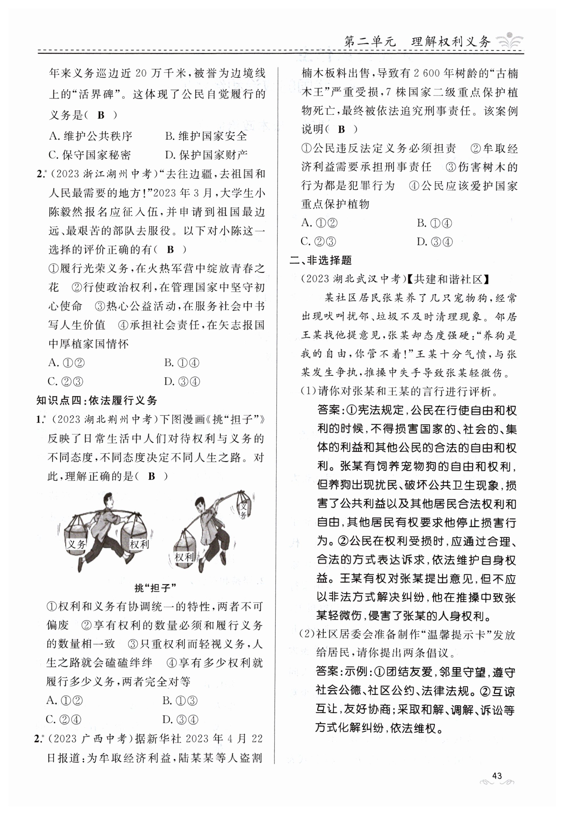 注:目前有些书本章节名称可能整理的还不是很完善,但都是按照顺序排列的,请同学们按照顺序仔细查找。练习册 2024年名校课堂贵州人民出版社八年级道德与法治下册人教版 答案主要是用来给同学们做完题方便对答案用的,请勿直接抄袭。
