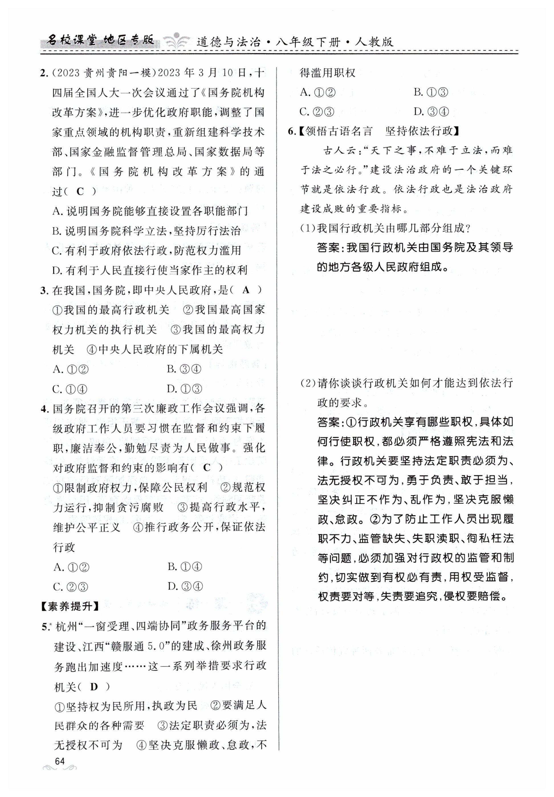 注:目前有些书本章节名称可能整理的还不是很完善,但都是按照顺序排列的,请同学们按照顺序仔细查找。练习册 2024年名校课堂贵州人民出版社八年级道德与法治下册人教版 答案主要是用来给同学们做完题方便对答案用的,请勿直接抄袭。