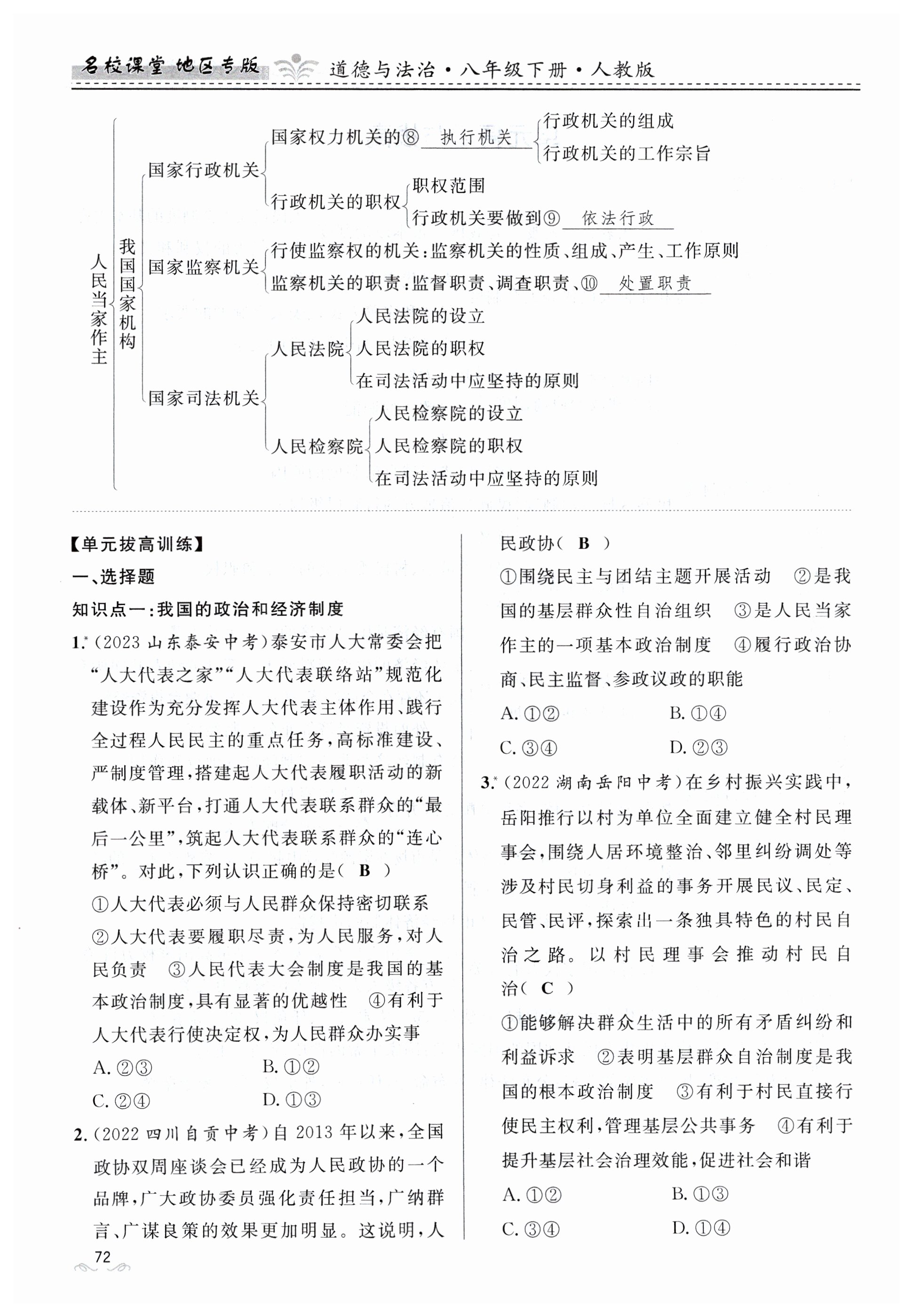 注:目前有些书本章节名称可能整理的还不是很完善,但都是按照顺序排列的,请同学们按照顺序仔细查找。练习册 2024年名校课堂贵州人民出版社八年级道德与法治下册人教版 答案主要是用来给同学们做完题方便对答案用的,请勿直接抄袭。