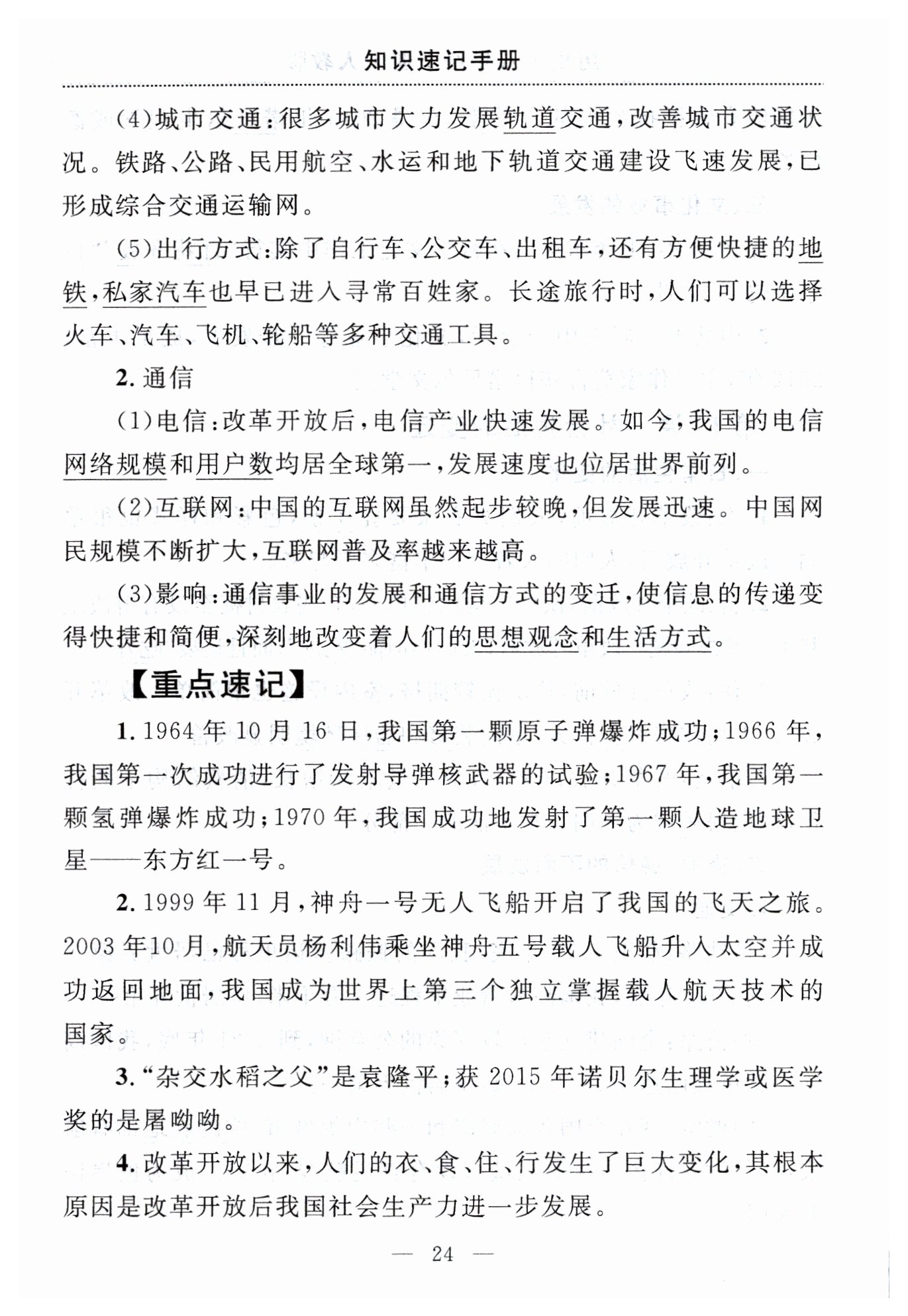 2024年名校课堂贵州人民出版社八年级历史下册人教版