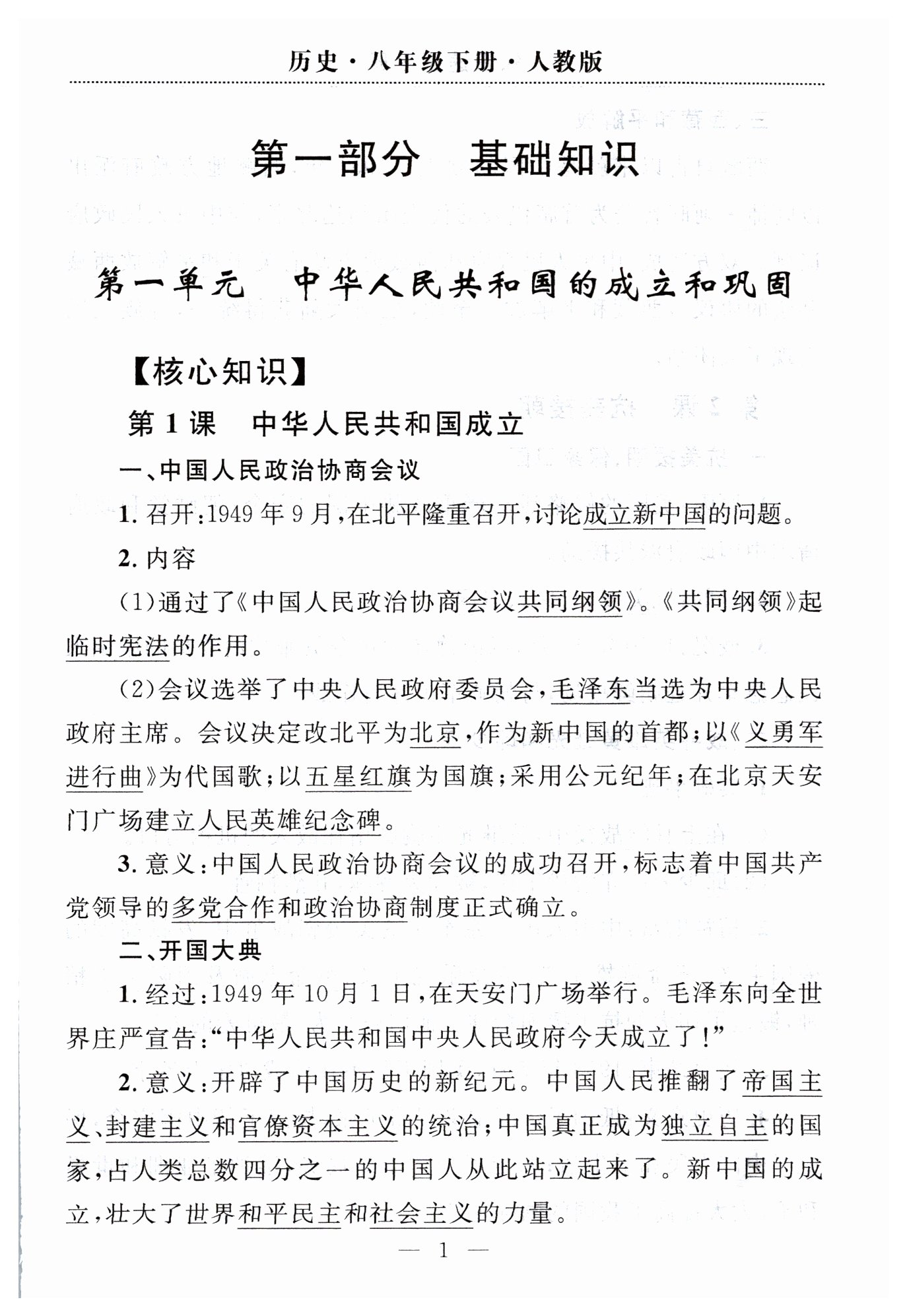 2024年名校课堂贵州人民出版社八年级历史下册人教版