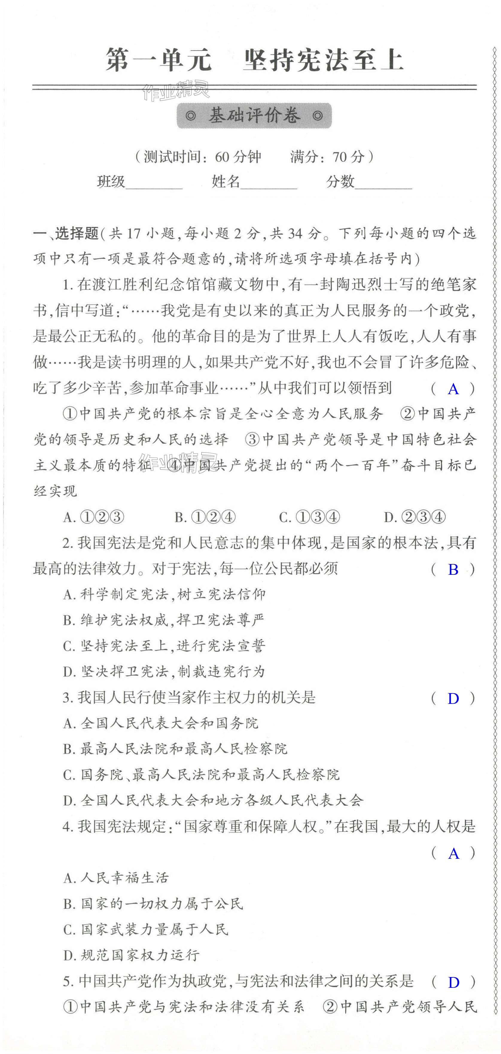 注:目前有些书本章节名称可能整理的还不是很完善,但都是按照顺序排列的,请同学们按照顺序仔细查找。练习册2024年节节高大象出版社八年级道德与法治下册人教版答案主要是用来给同学们做完题方便对答案用的,请勿直接抄袭。