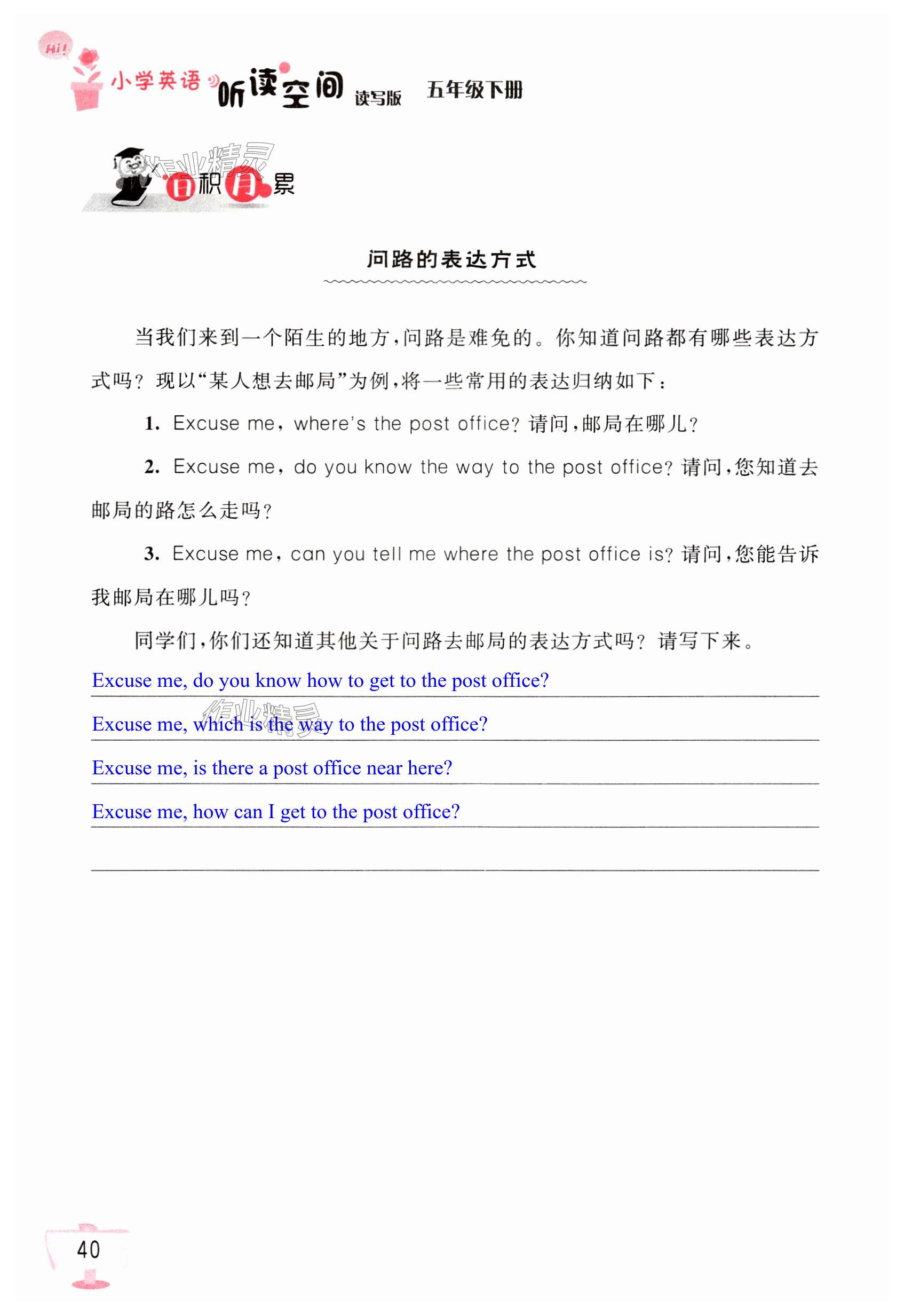 注:目前有些书本章节名称可能整理的还不是很完善,但都是按照顺序排列的,请同学们按照顺序仔细查找。练习册 2024年英语听读空间五年级下册读写版 答案主要是用来给同学们做完题方便对答案用的,请勿直接抄袭。