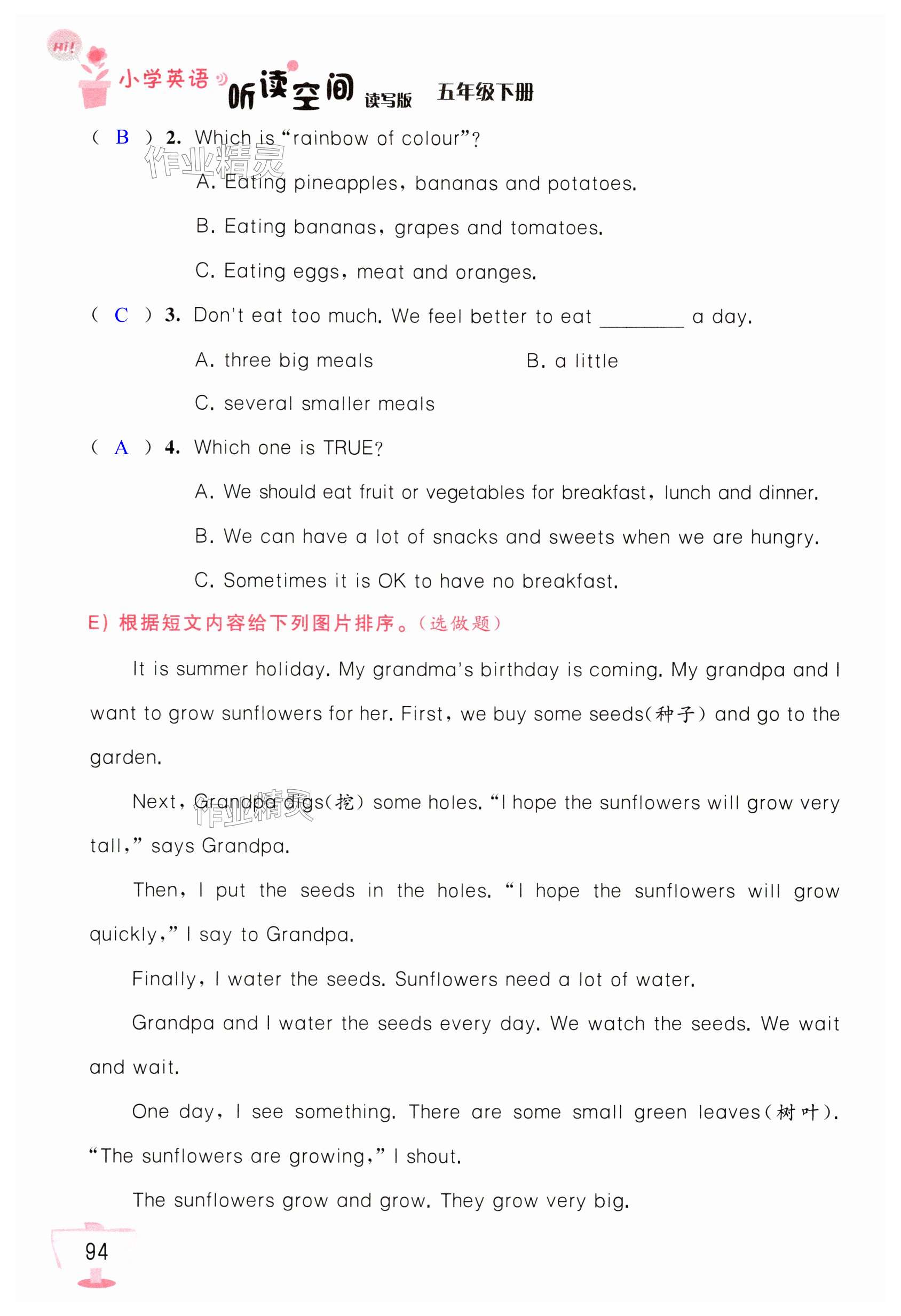 注:目前有些书本章节名称可能整理的还不是很完善,但都是按照顺序排列的,请同学们按照顺序仔细查找。练习册 2024年英语听读空间五年级下册读写版 答案主要是用来给同学们做完题方便对答案用的,请勿直接抄袭。