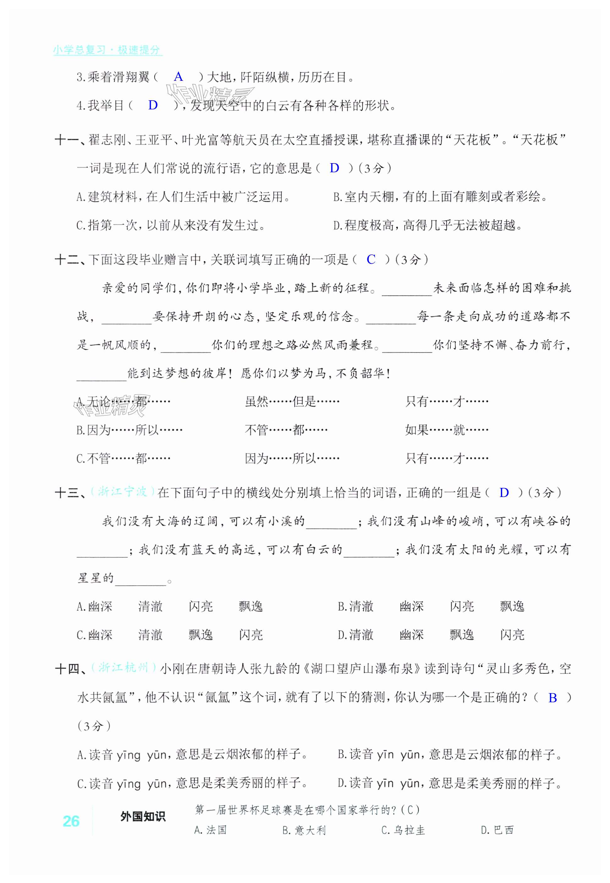 注:目前有些书本章节名称可能整理的还不是很完善,但都是按照顺序排列的,请同学们按照顺序仔细查找。练习册 2024年新领程小学总复习高效练案六年级语文人教版 答案主要是用来给同学们做完题方便对答案用的,请勿直接抄袭。
