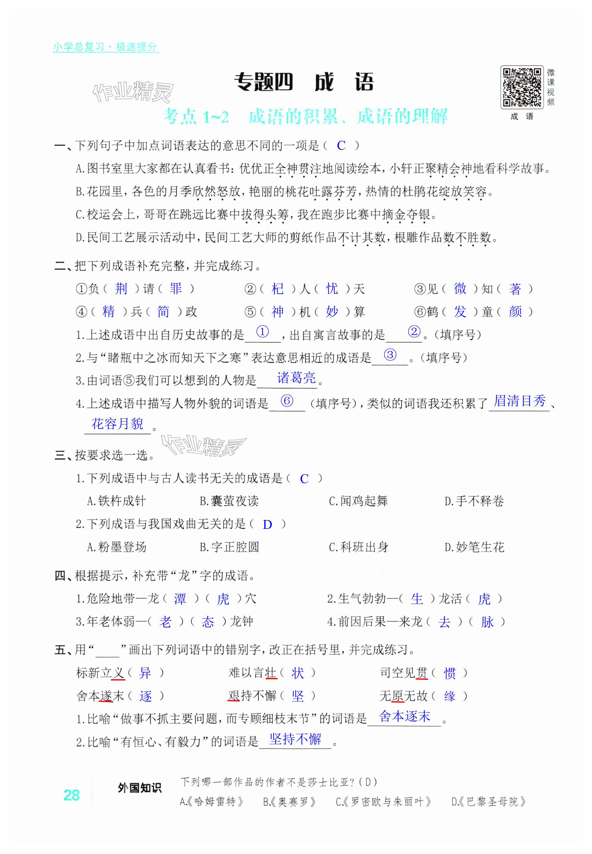 注:目前有些书本章节名称可能整理的还不是很完善,但都是按照顺序排列的,请同学们按照顺序仔细查找。练习册 2024年新领程小学总复习高效练案六年级语文人教版 答案主要是用来给同学们做完题方便对答案用的,请勿直接抄袭。