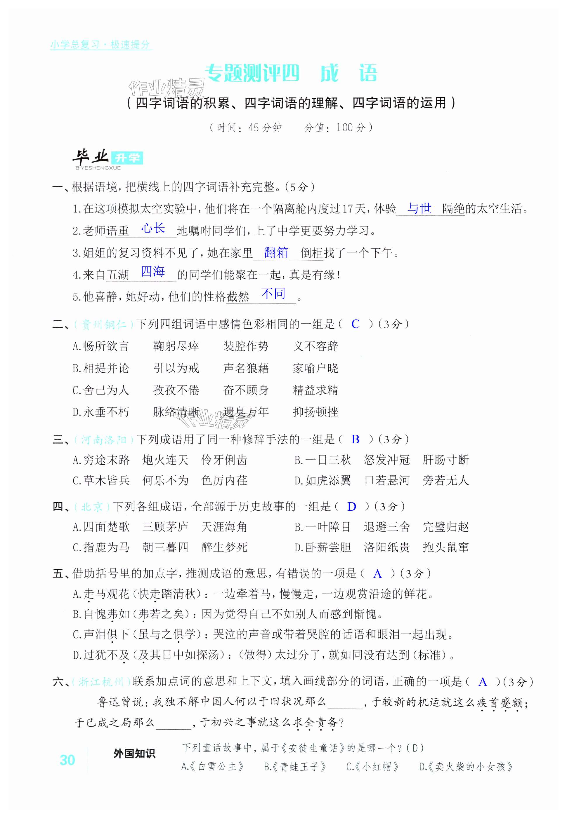 注:目前有些书本章节名称可能整理的还不是很完善,但都是按照顺序排列的,请同学们按照顺序仔细查找。练习册 2024年新领程小学总复习高效练案六年级语文人教版 答案主要是用来给同学们做完题方便对答案用的,请勿直接抄袭。