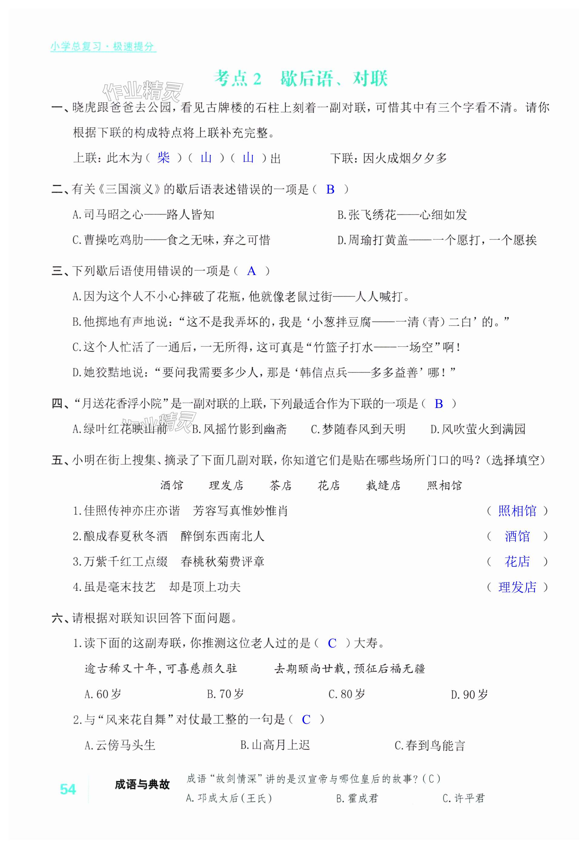 注:目前有些书本章节名称可能整理的还不是很完善,但都是按照顺序排列的,请同学们按照顺序仔细查找。练习册 2024年新领程小学总复习高效练案六年级语文人教版 答案主要是用来给同学们做完题方便对答案用的,请勿直接抄袭。