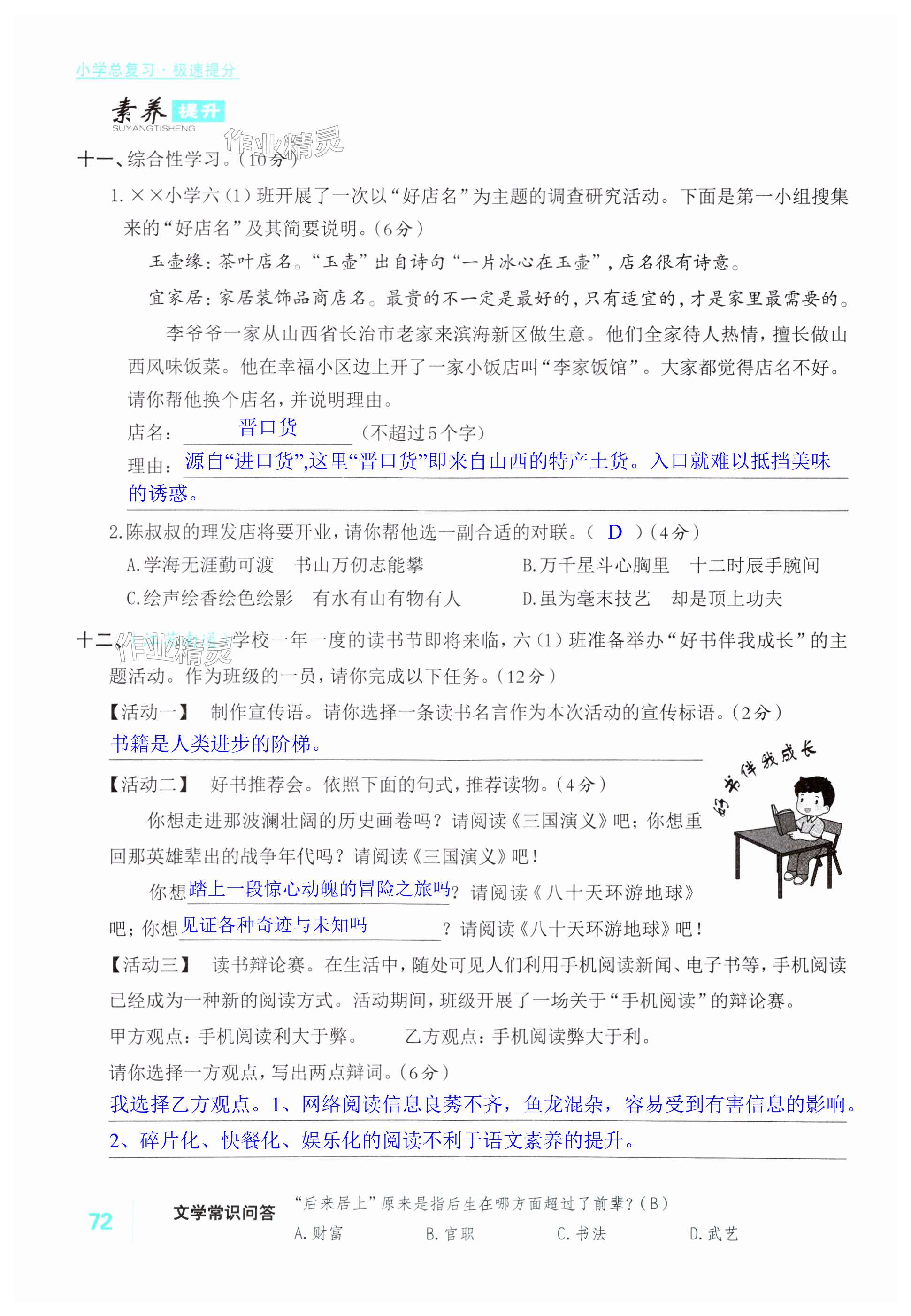 注:目前有些书本章节名称可能整理的还不是很完善,但都是按照顺序排列的,请同学们按照顺序仔细查找。练习册 2024年新领程小学总复习高效练案六年级语文人教版 答案主要是用来给同学们做完题方便对答案用的,请勿直接抄袭。