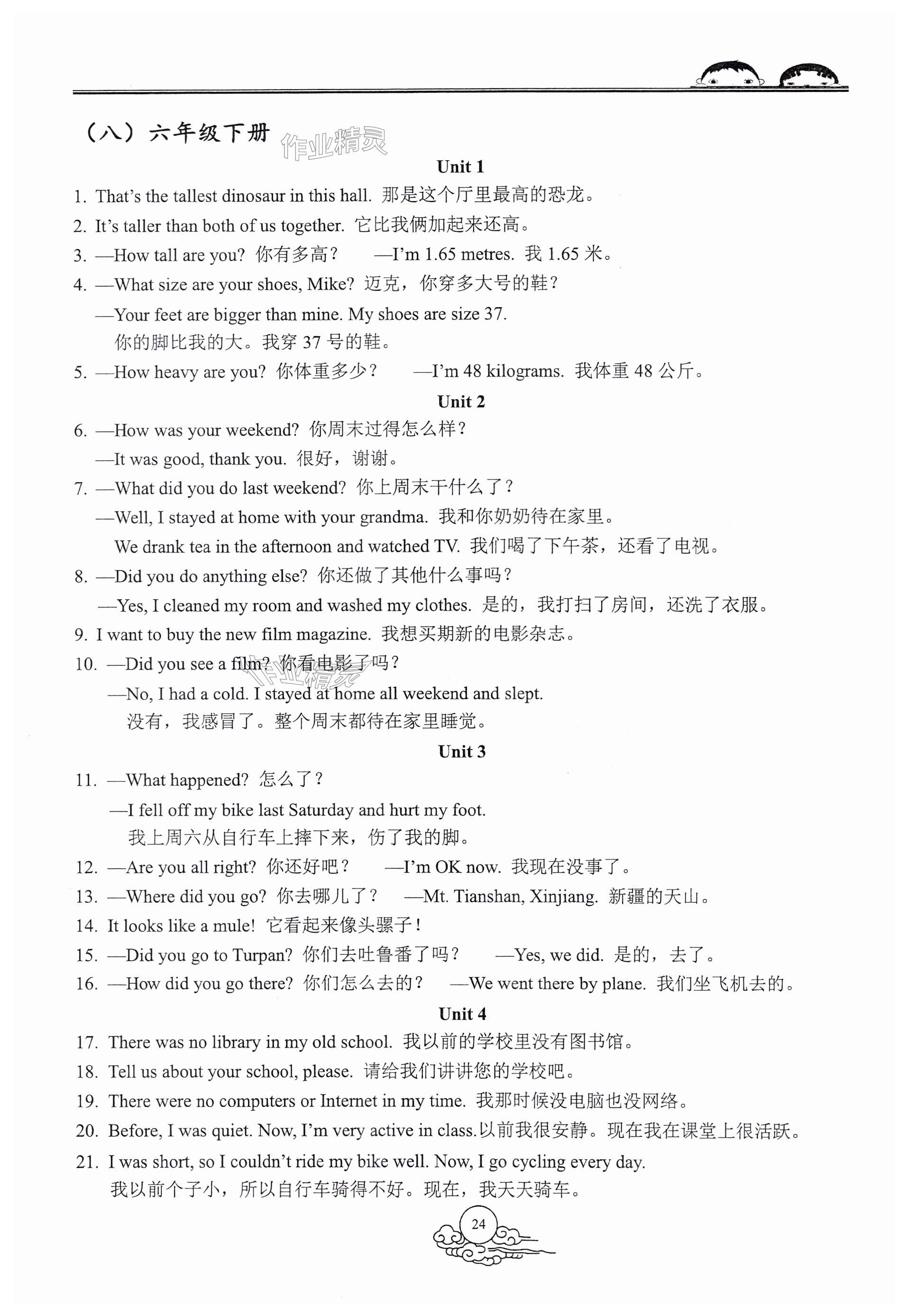 注:目前有些书本章节名称可能整理的还不是很完善,但都是按照顺序排列的,请同学们按照顺序仔细查找。练习册 2024年小学毕业班总复习六年级英语 答案主要是用来给同学们做完题方便对答案用的,请勿直接抄袭。