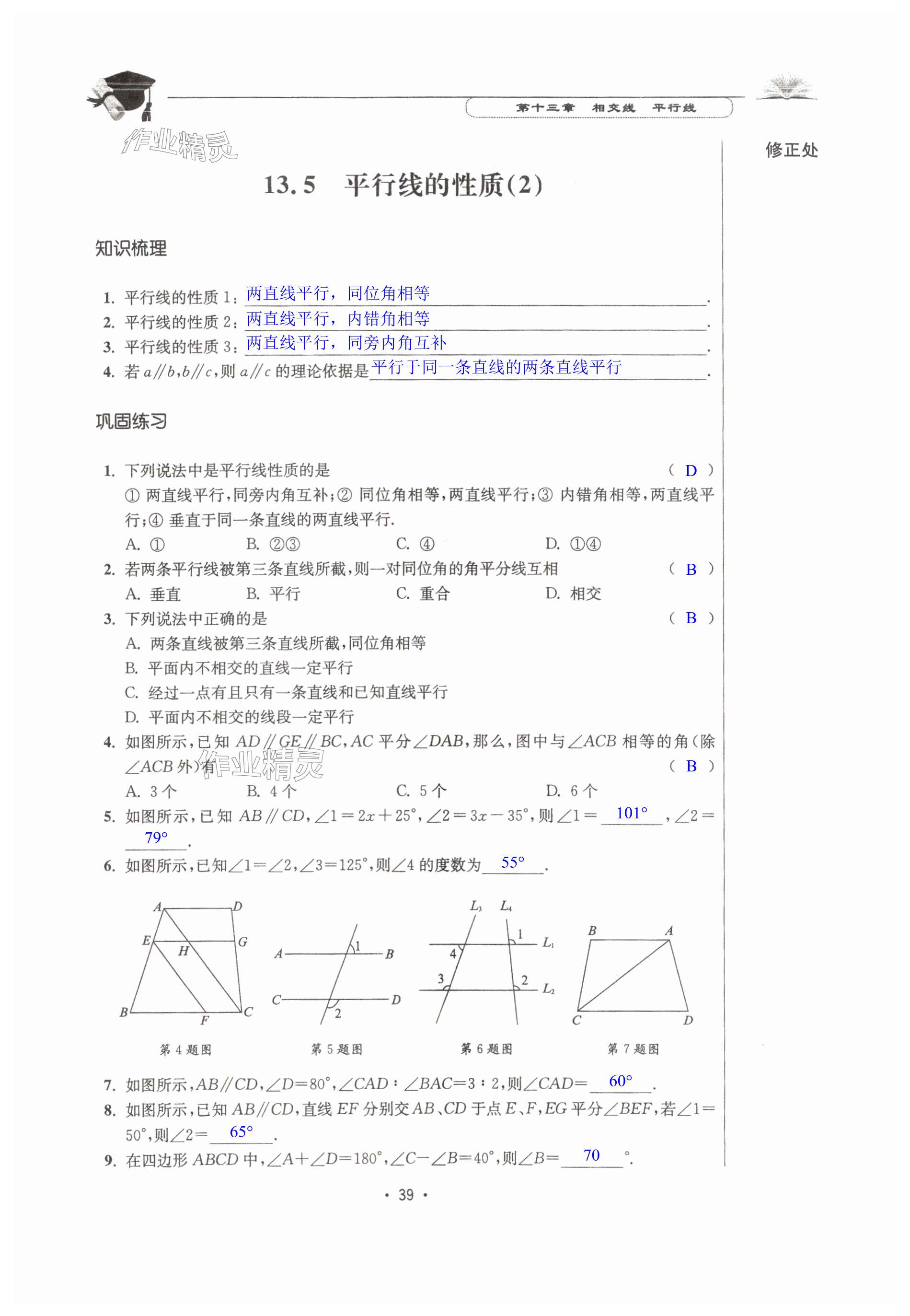 注:目前有些书本章节名称可能整理的还不是很完善,但都是按照顺序排列的,请同学们按照顺序仔细查找。练习册 2024年全优金典七年级数学下册沪教版五四制 答案主要是用来给同学们做完题方便对答案用的,请勿直接抄袭。