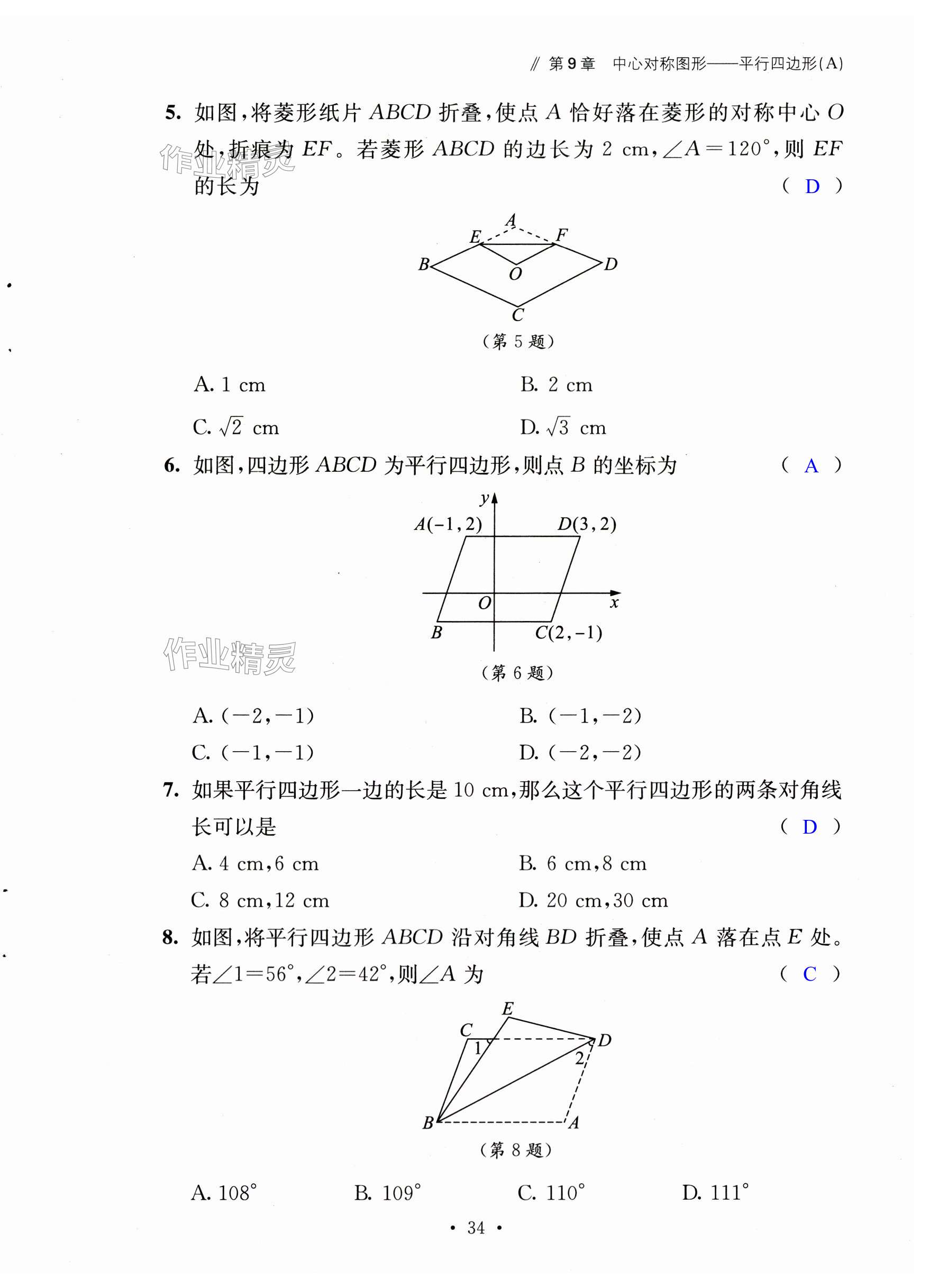 注:目前有些书本章节名称可能整理的还不是很完善,但都是按照顺序排列的,请同学们按照顺序仔细查找。练习册 2024年伴你学单元活页卷八年级数学下册苏科版 答案主要是用来给同学们做完题方便对答案用的,请勿直接抄袭。
