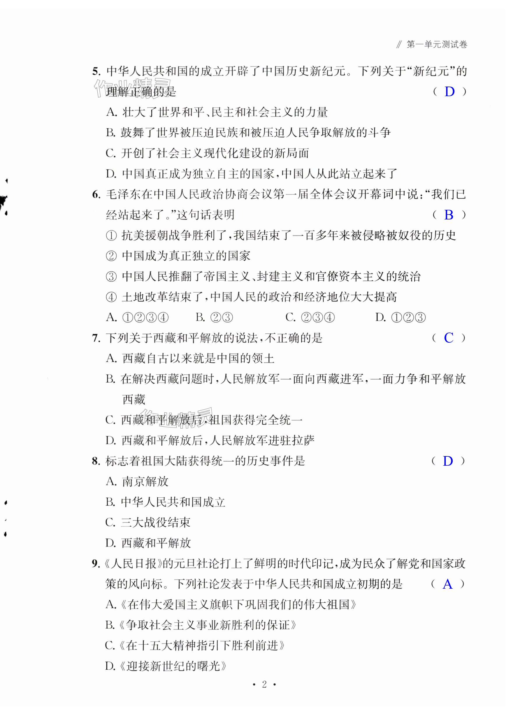 注:目前有些书本章节名称可能整理的还不是很完善,但都是按照顺序排列的,请同学们按照顺序仔细查找。练习册 2024年伴你学活页卷八年级历史下册人教版 答案主要是用来给同学们做完题方便对答案用的,请勿直接抄袭。