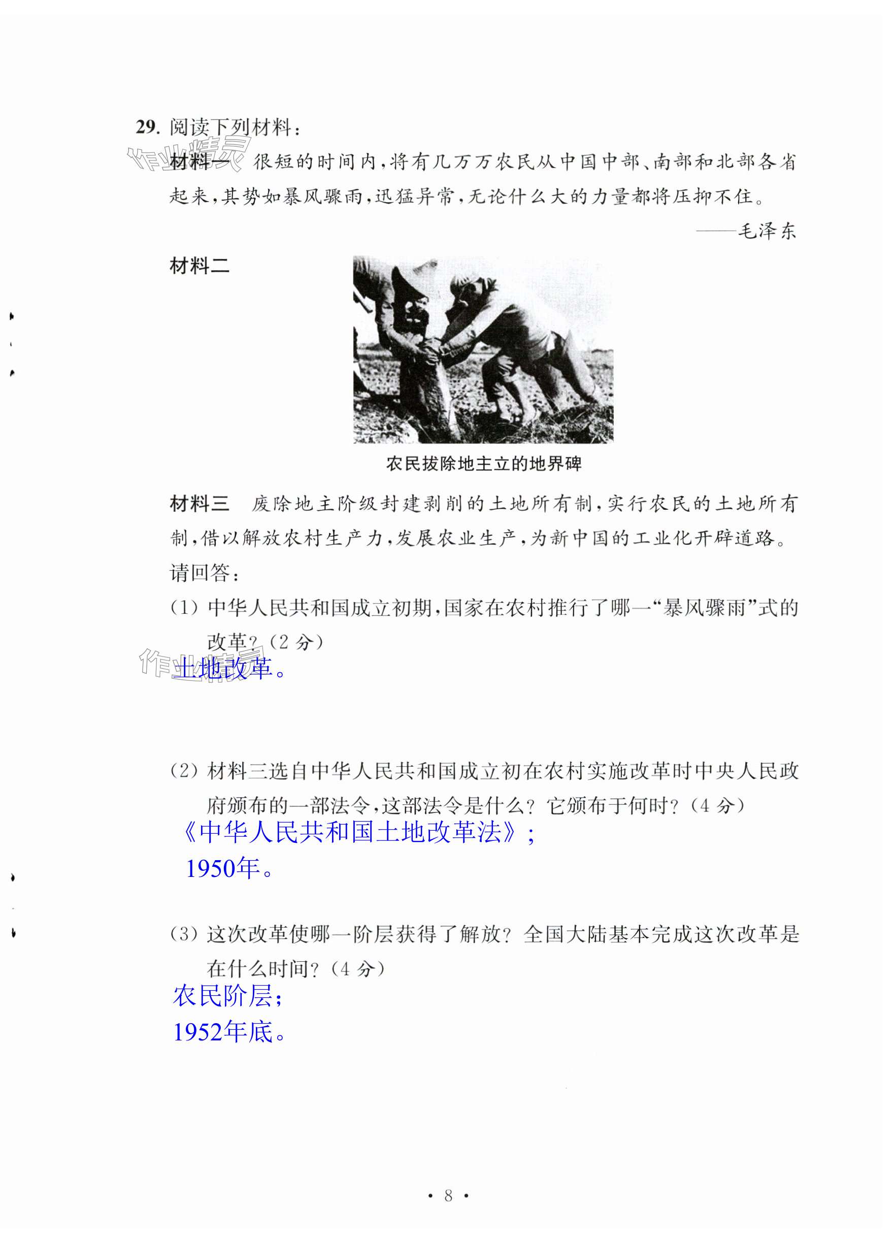 注:目前有些书本章节名称可能整理的还不是很完善,但都是按照顺序排列的,请同学们按照顺序仔细查找。练习册 2024年伴你学活页卷八年级历史下册人教版 答案主要是用来给同学们做完题方便对答案用的,请勿直接抄袭。