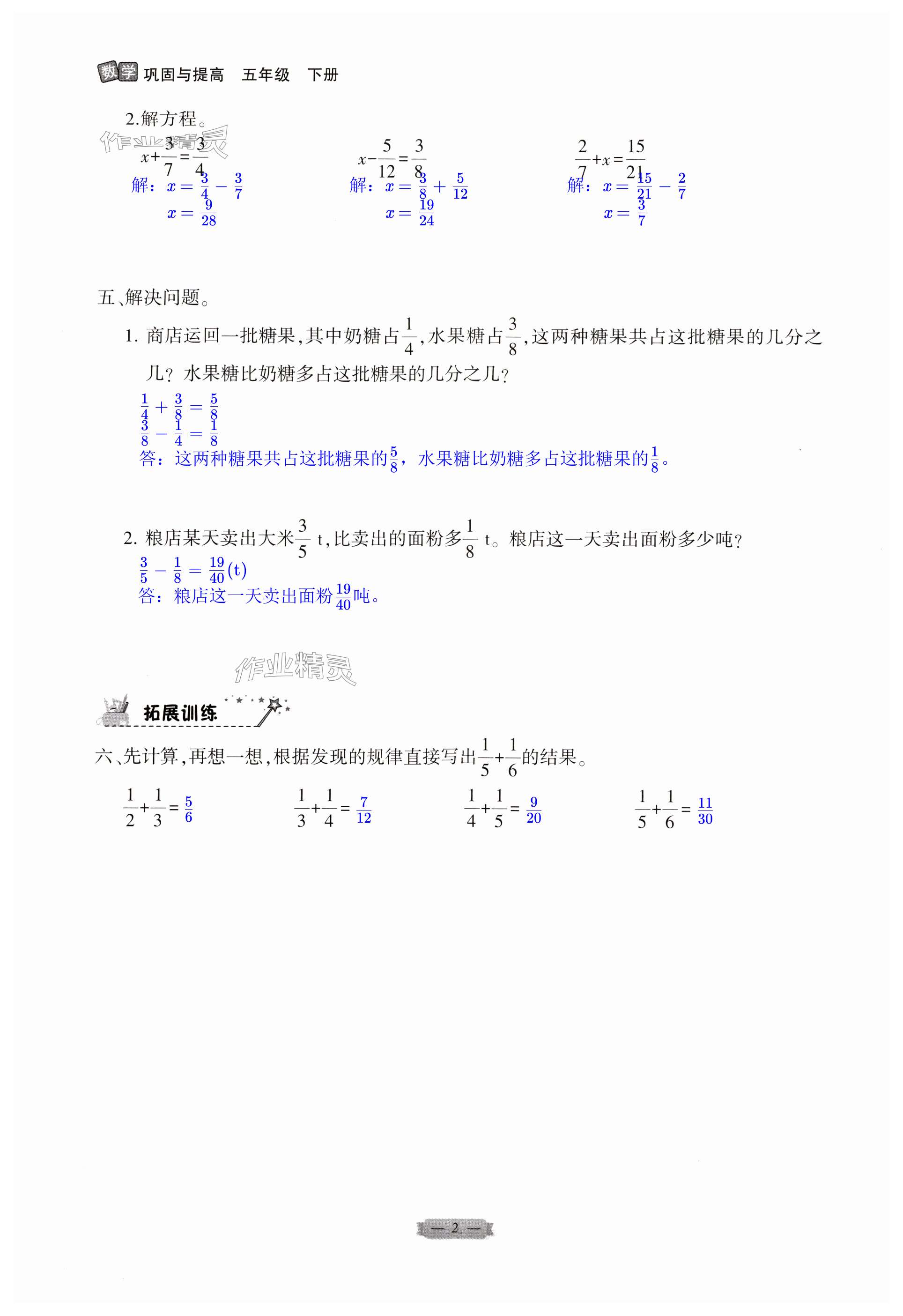 2024年巩固与提高郑州大学出版社五年级数学下册北师大版
