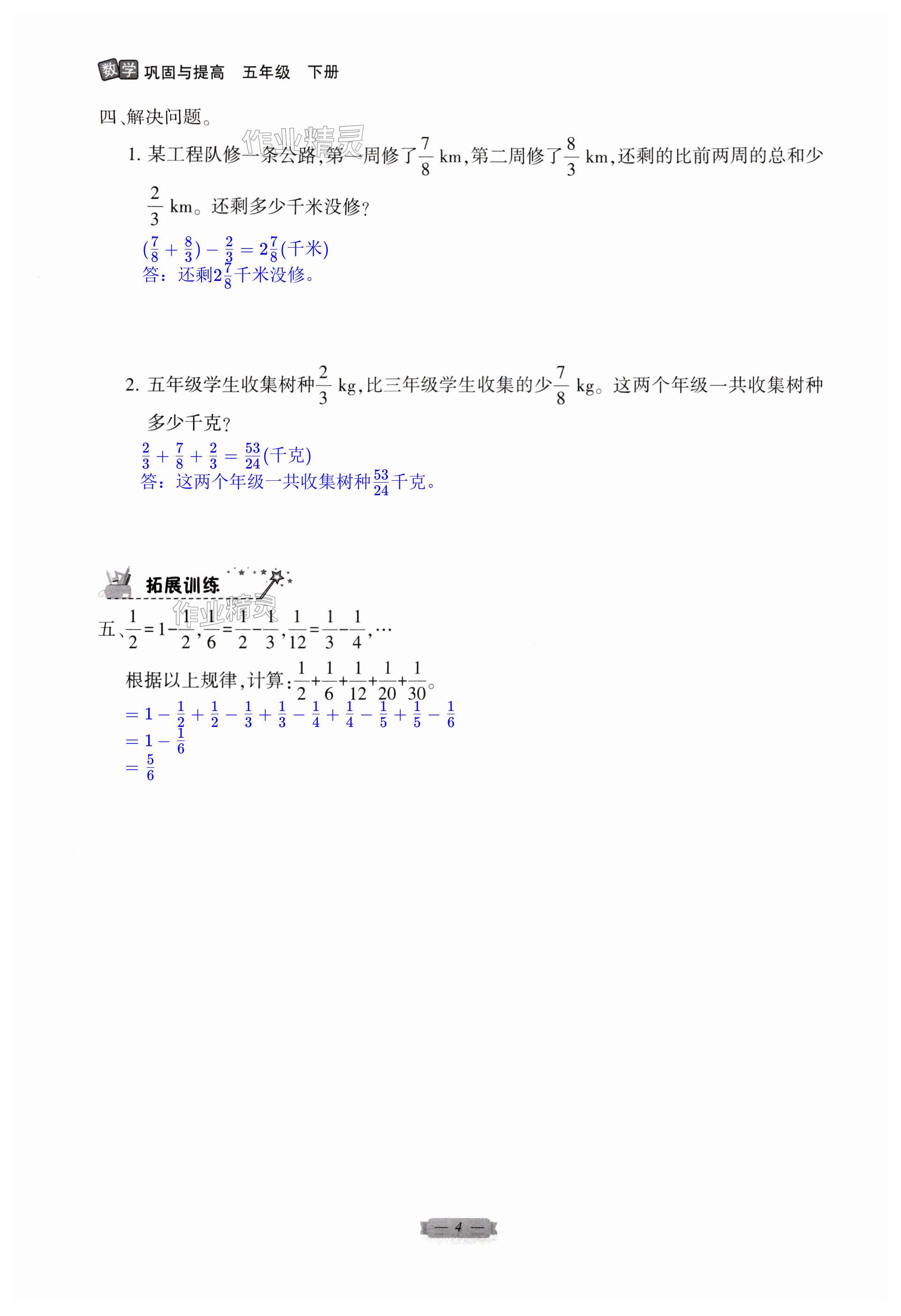 2024年巩固与提高郑州大学出版社五年级数学下册北师大版