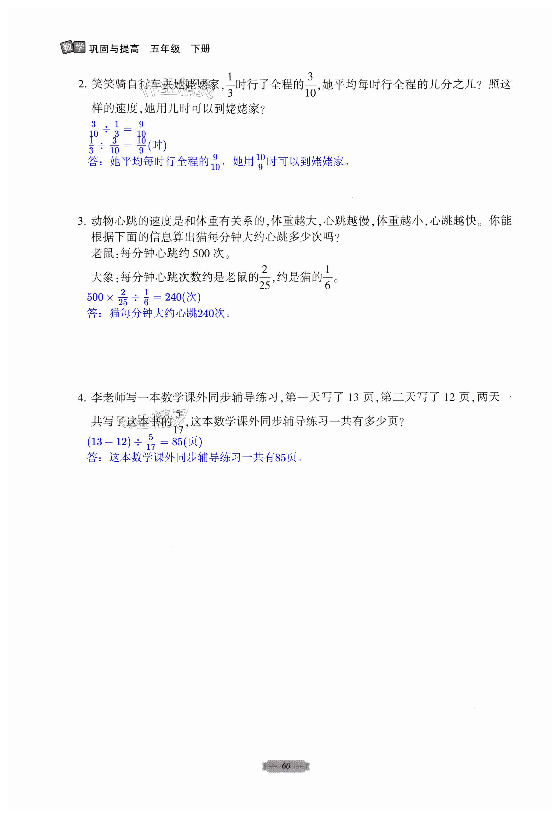 2024年巩固与提高郑州大学出版社五年级数学下册北师大版