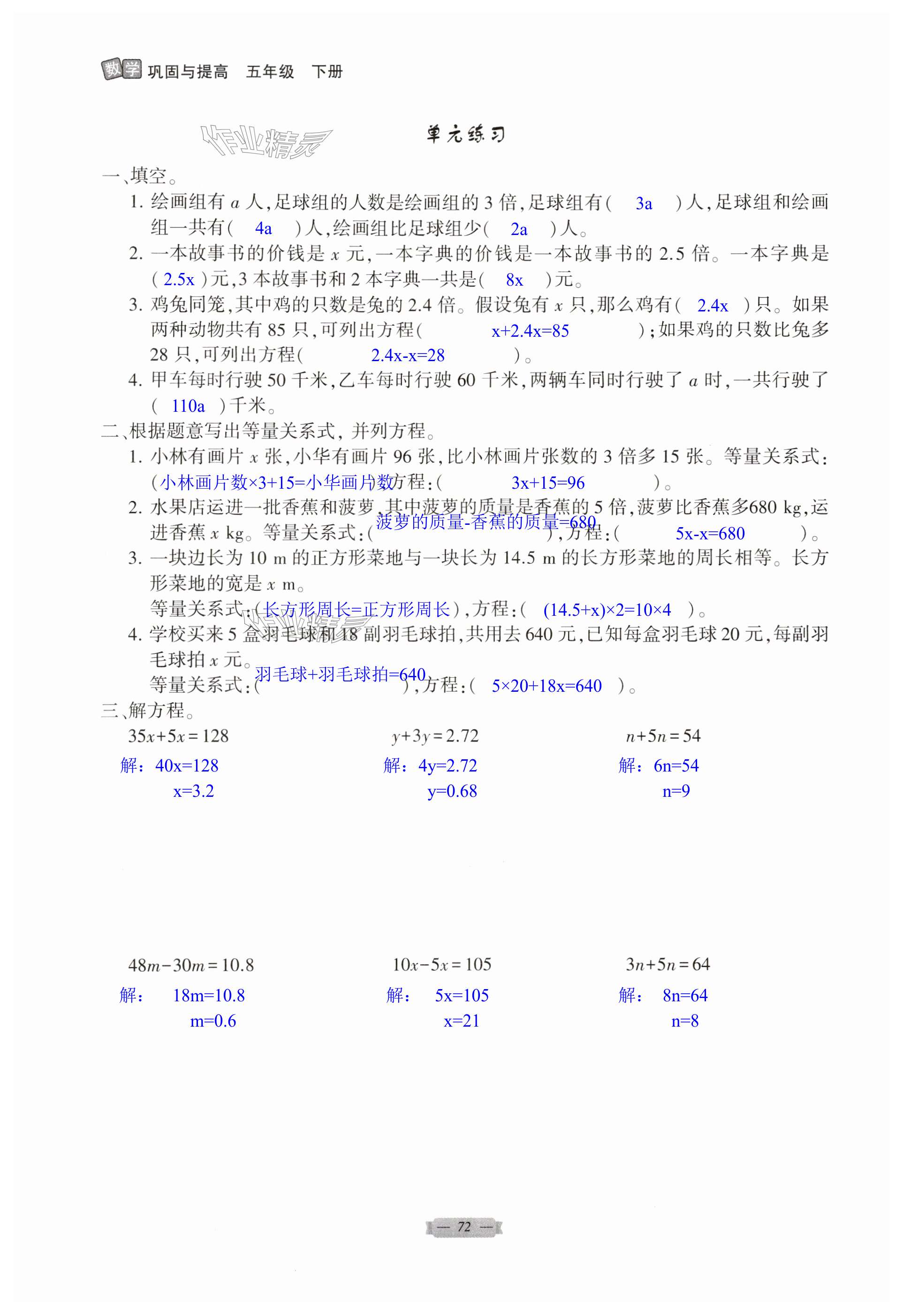 注:目前有些书本章节名称可能整理的还不是很完善,但都是按照顺序排列的,请同学们按照顺序仔细查找。练习册 2024年巩固与提高郑州大学出版社五年级数学下册北师大版 答案主要是用来给同学们做完题方便对答案用的,请勿直接抄袭。
