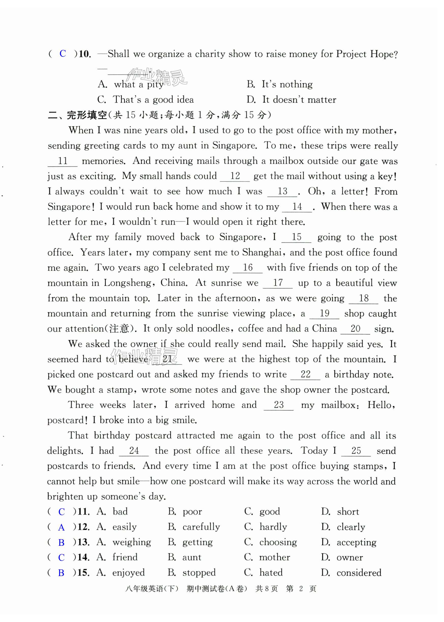 注:目前有些书本章节名称可能整理的还不是很完善,但都是按照顺序排列的,请同学们按照顺序仔细查找。练习册 2024年伴你学单元达标检测卷八年级英语下册译林版 答案主要是用来给同学们做完题方便对答案用的,请勿直接抄袭。