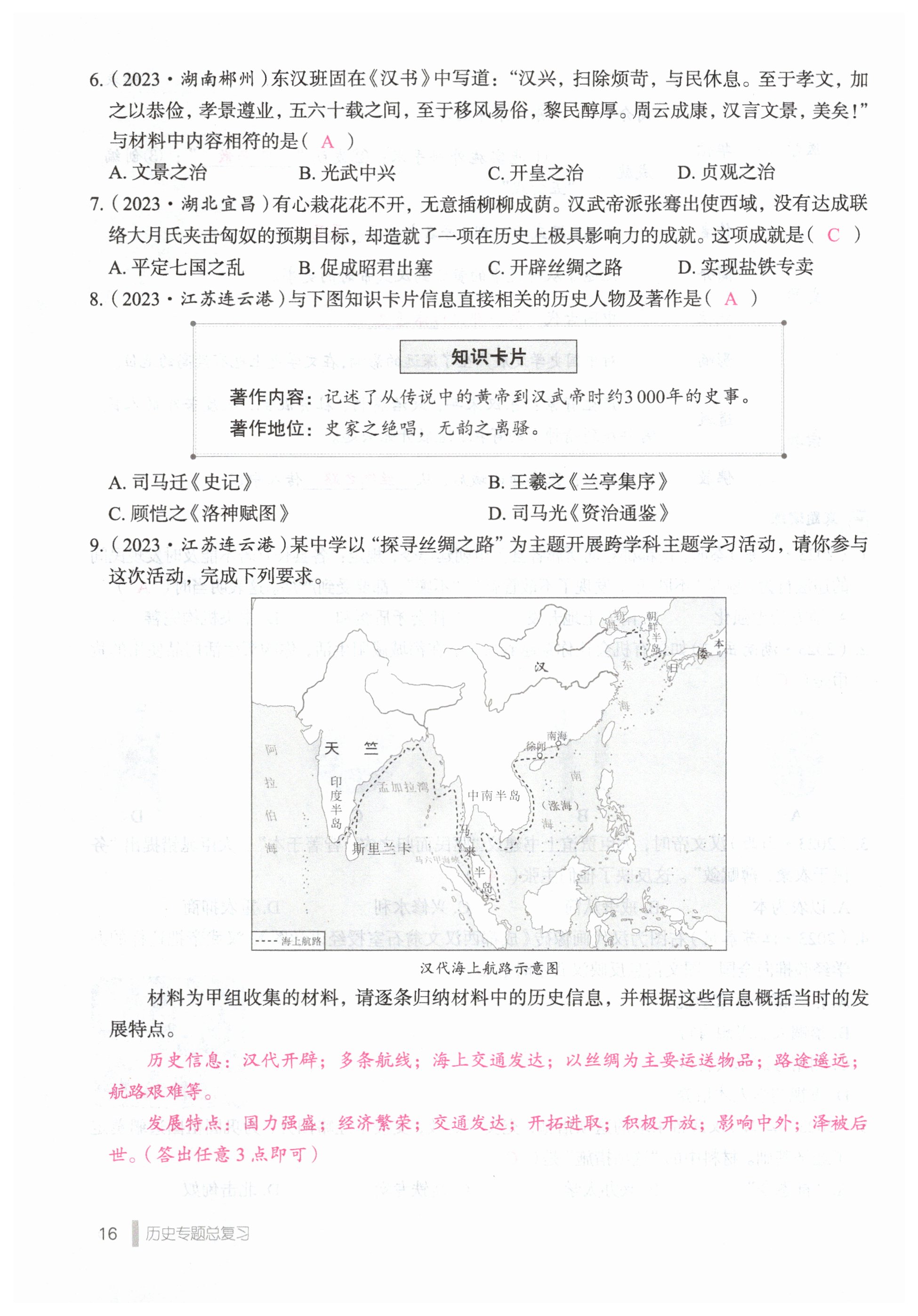 注:目前有些书本章节名称可能整理的还不是很完善,但都是按照顺序排列的,请同学们按照顺序仔细查找。练习册 2024年天下中考专题总复习历史人教版 答案主要是用来给同学们做完题方便对答案用的,请勿直接抄袭。