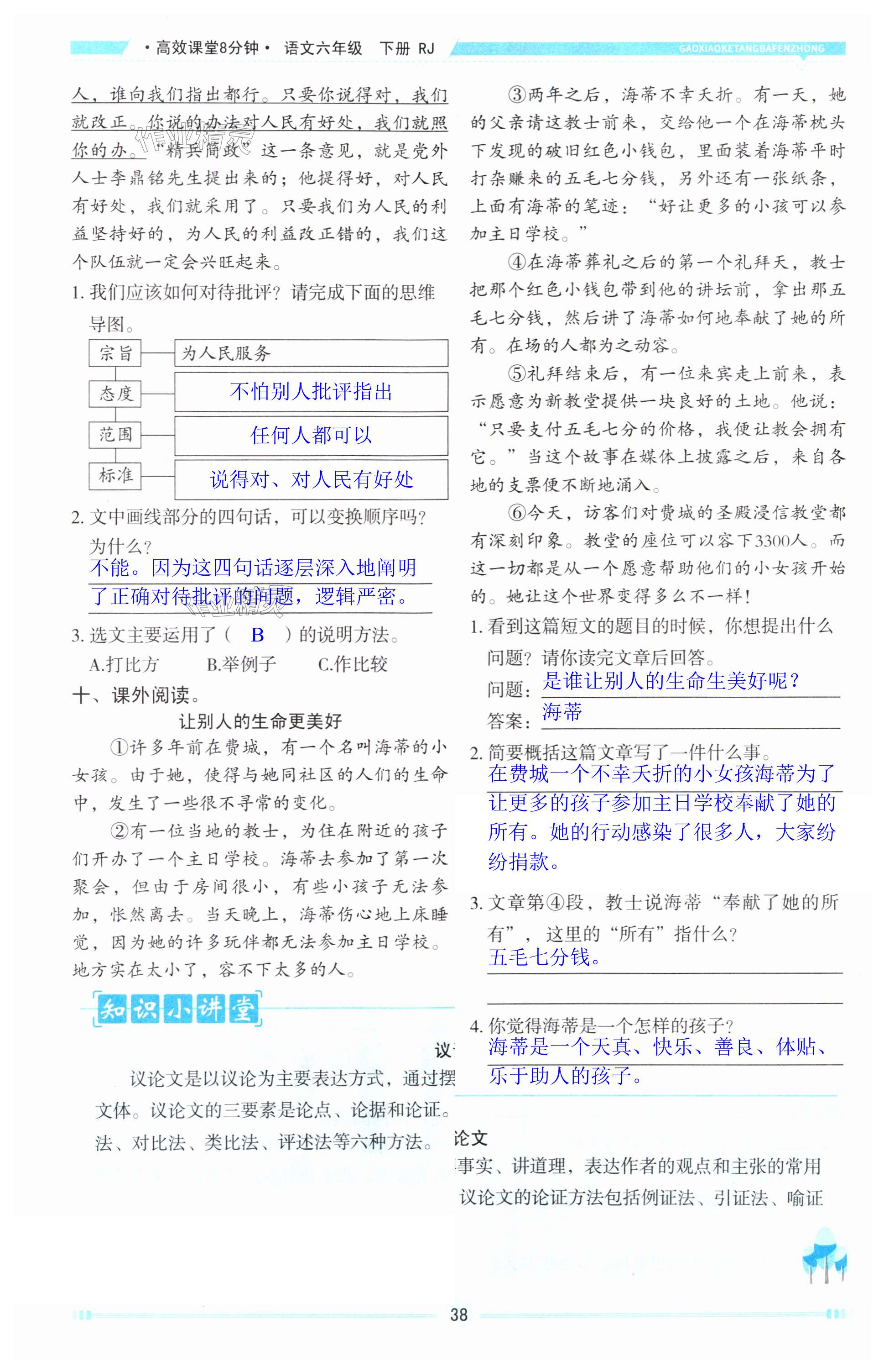 注:目前有些书本章节名称可能整理的还不是很完善,但都是按照顺序排列的,请同学们按照顺序仔细查找。练习册 2024年高效课堂8分钟六年级语文下册人教版 答案主要是用来给同学们做完题方便对答案用的,请勿直接抄袭。