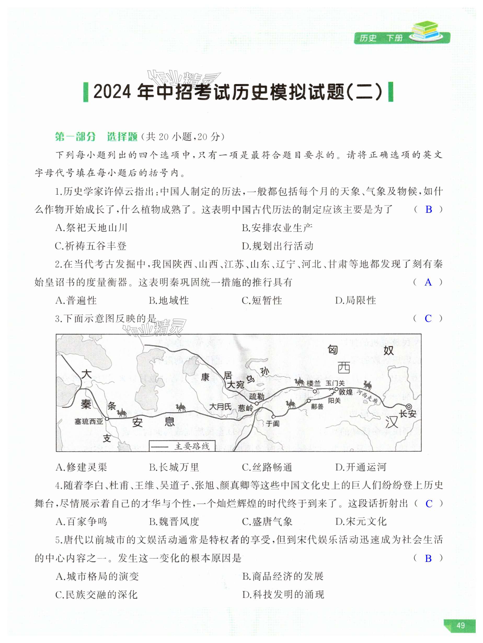 注:目前有些书本章节名称可能整理的还不是很完善,但都是按照顺序排列的,请同学们按照顺序仔细查找。练习册 2024年河南省初中学业水平考试解析与检测历史下册 答案主要是用来给同学们做完题方便对答案用的,请勿直接抄袭。