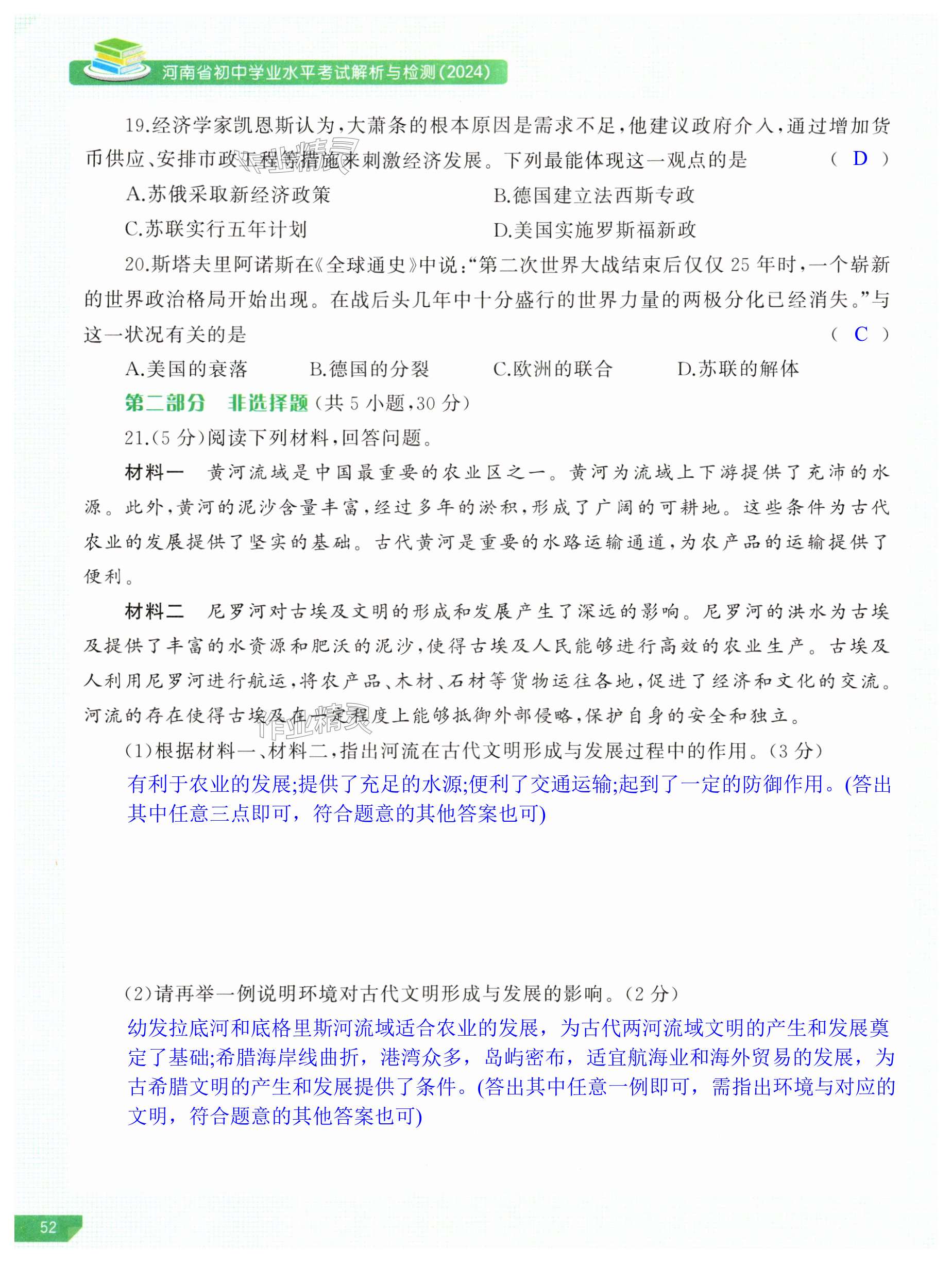 2024年河南省初中学业水平考试解析与检测历史下册
