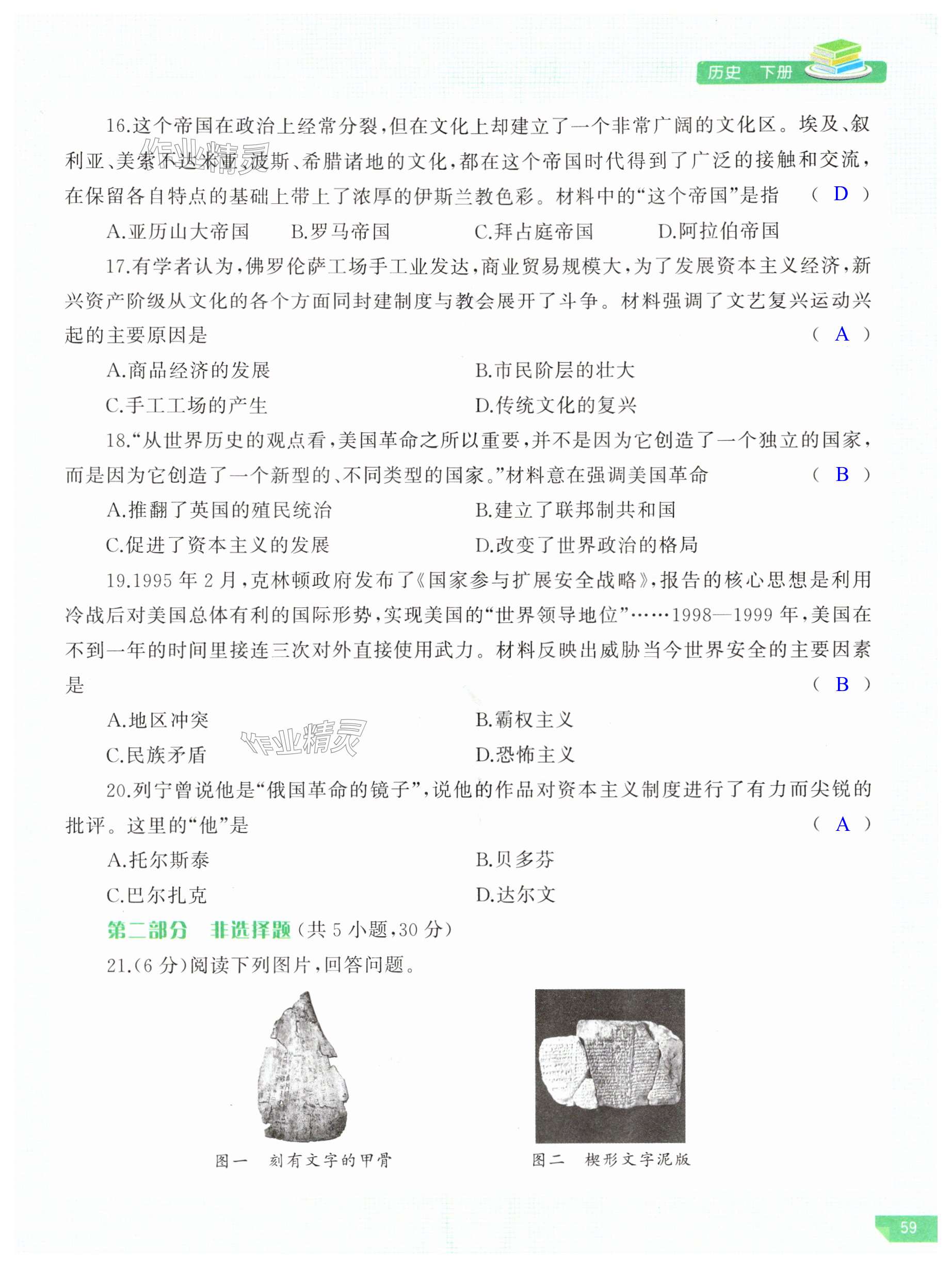 注:目前有些书本章节名称可能整理的还不是很完善,但都是按照顺序排列的,请同学们按照顺序仔细查找。练习册 2024年河南省初中学业水平考试解析与检测历史下册 答案主要是用来给同学们做完题方便对答案用的,请勿直接抄袭。