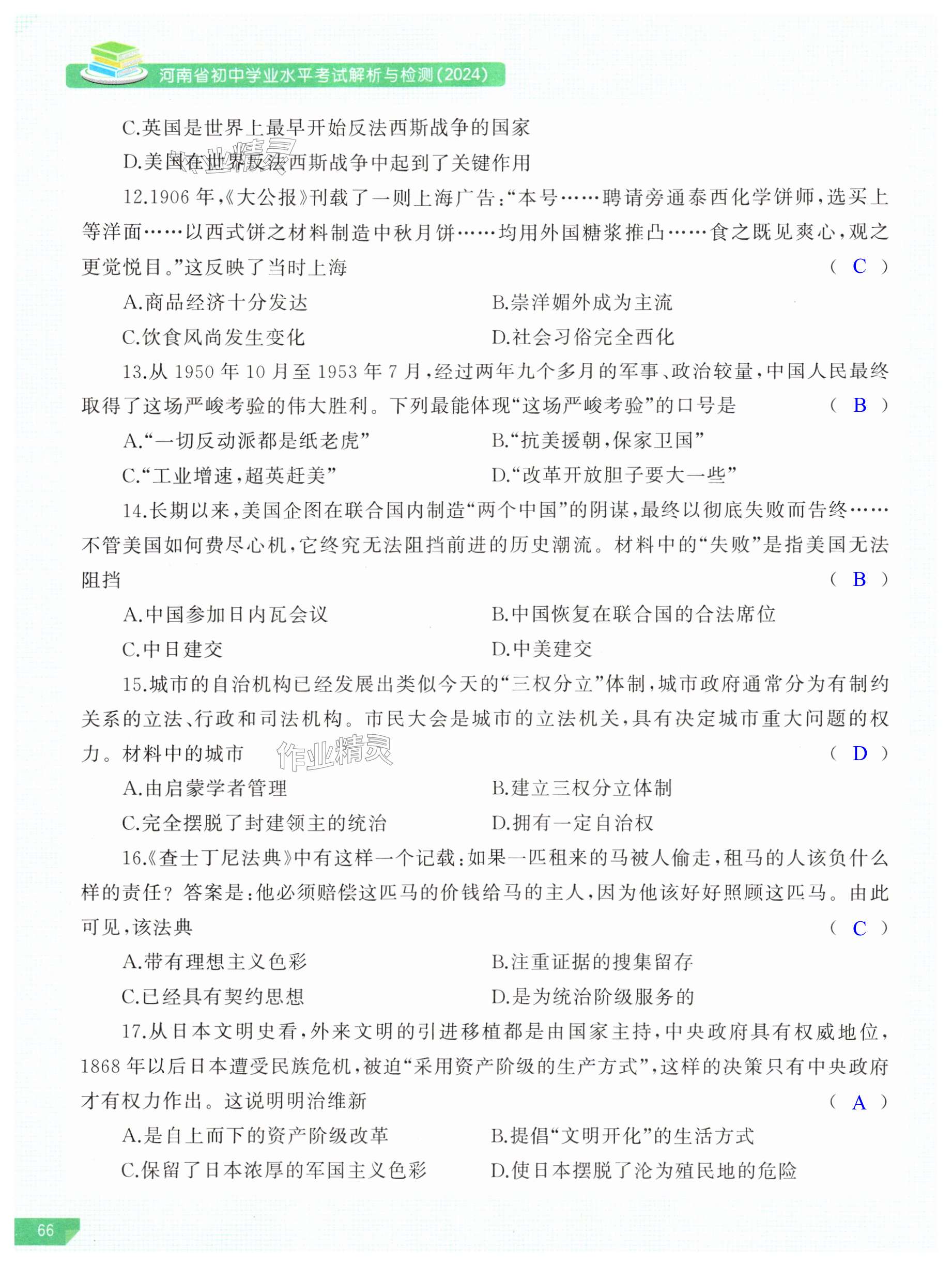 注:目前有些书本章节名称可能整理的还不是很完善,但都是按照顺序排列的,请同学们按照顺序仔细查找。练习册 2024年河南省初中学业水平考试解析与检测历史下册 答案主要是用来给同学们做完题方便对答案用的,请勿直接抄袭。