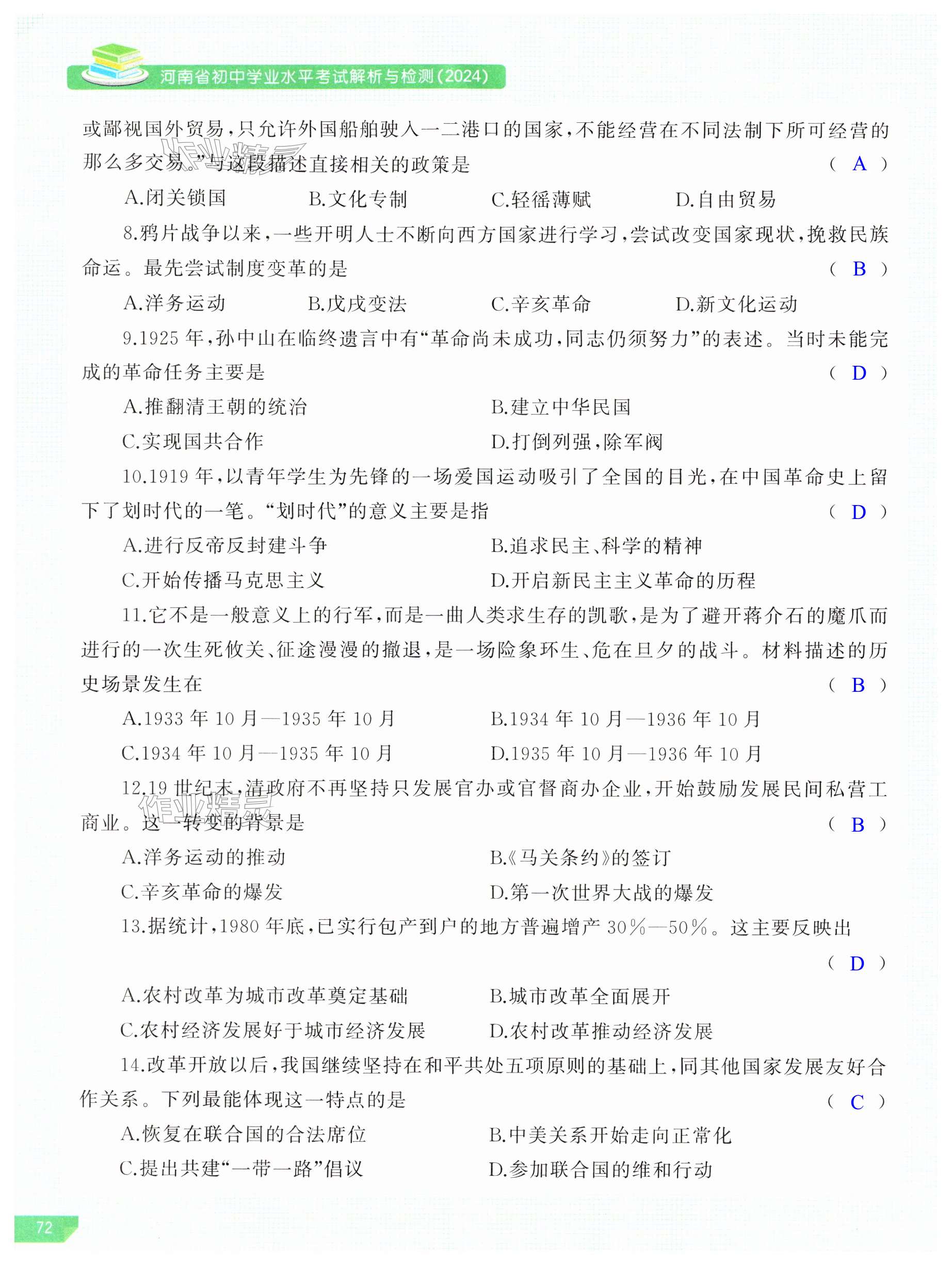 注:目前有些书本章节名称可能整理的还不是很完善,但都是按照顺序排列的,请同学们按照顺序仔细查找。练习册 2024年河南省初中学业水平考试解析与检测历史下册 答案主要是用来给同学们做完题方便对答案用的,请勿直接抄袭。