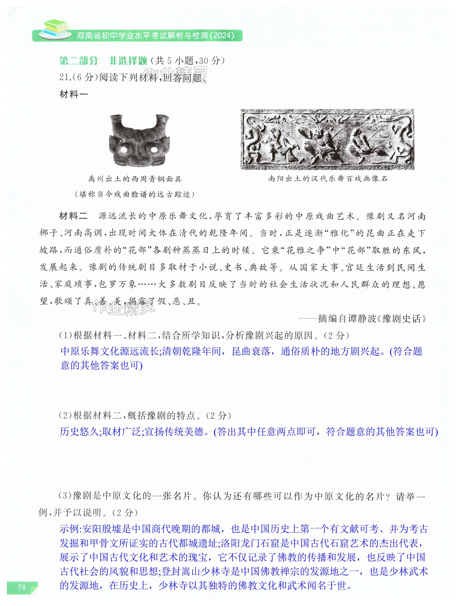 2024年河南省初中学业水平考试解析与检测历史下册