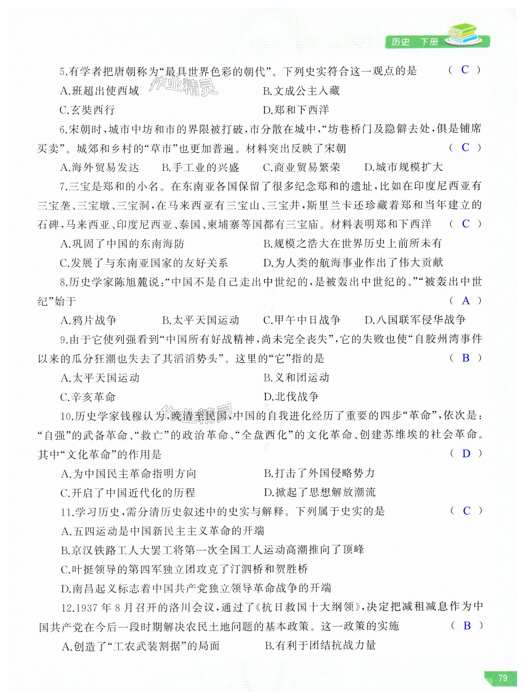 注:目前有些书本章节名称可能整理的还不是很完善,但都是按照顺序排列的,请同学们按照顺序仔细查找。练习册 2024年河南省初中学业水平考试解析与检测历史下册 答案主要是用来给同学们做完题方便对答案用的,请勿直接抄袭。