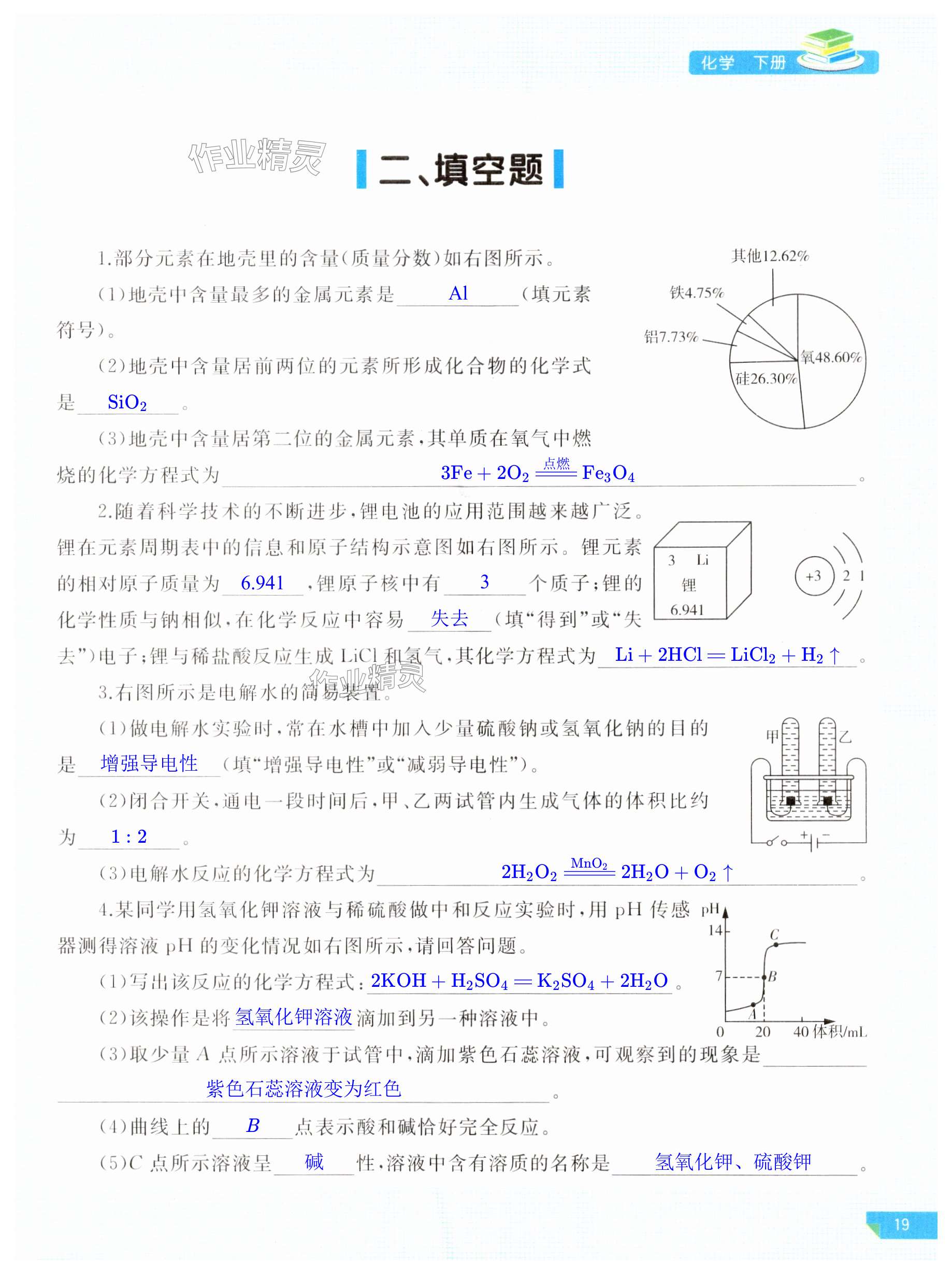 注:目前有些书本章节名称可能整理的还不是很完善,但都是按照顺序排列的,请同学们按照顺序仔细查找。练习册 2024年河南省初中学业水平考试解析与检测化学下册 答案主要是用来给同学们做完题方便对答案用的,请勿直接抄袭。