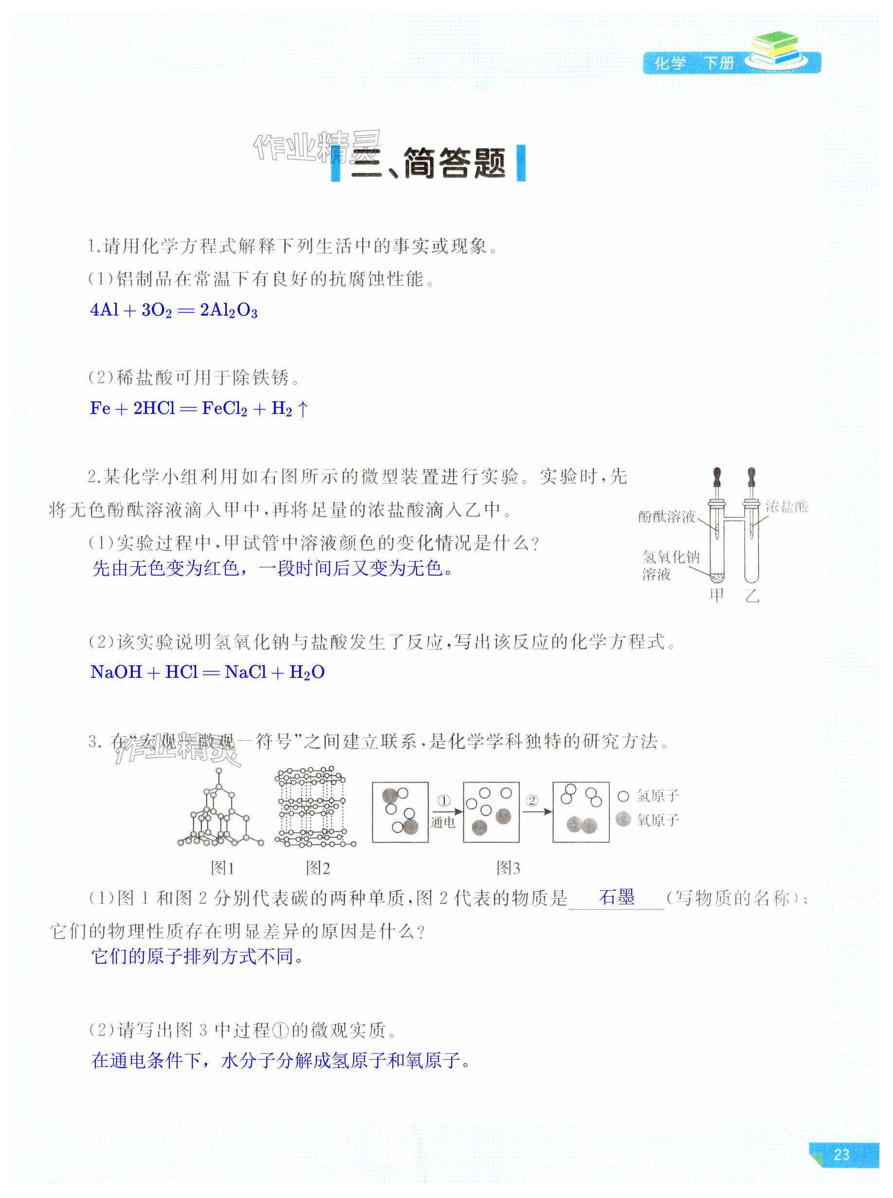 注:目前有些书本章节名称可能整理的还不是很完善,但都是按照顺序排列的,请同学们按照顺序仔细查找。练习册 2024年河南省初中学业水平考试解析与检测化学下册 答案主要是用来给同学们做完题方便对答案用的,请勿直接抄袭。