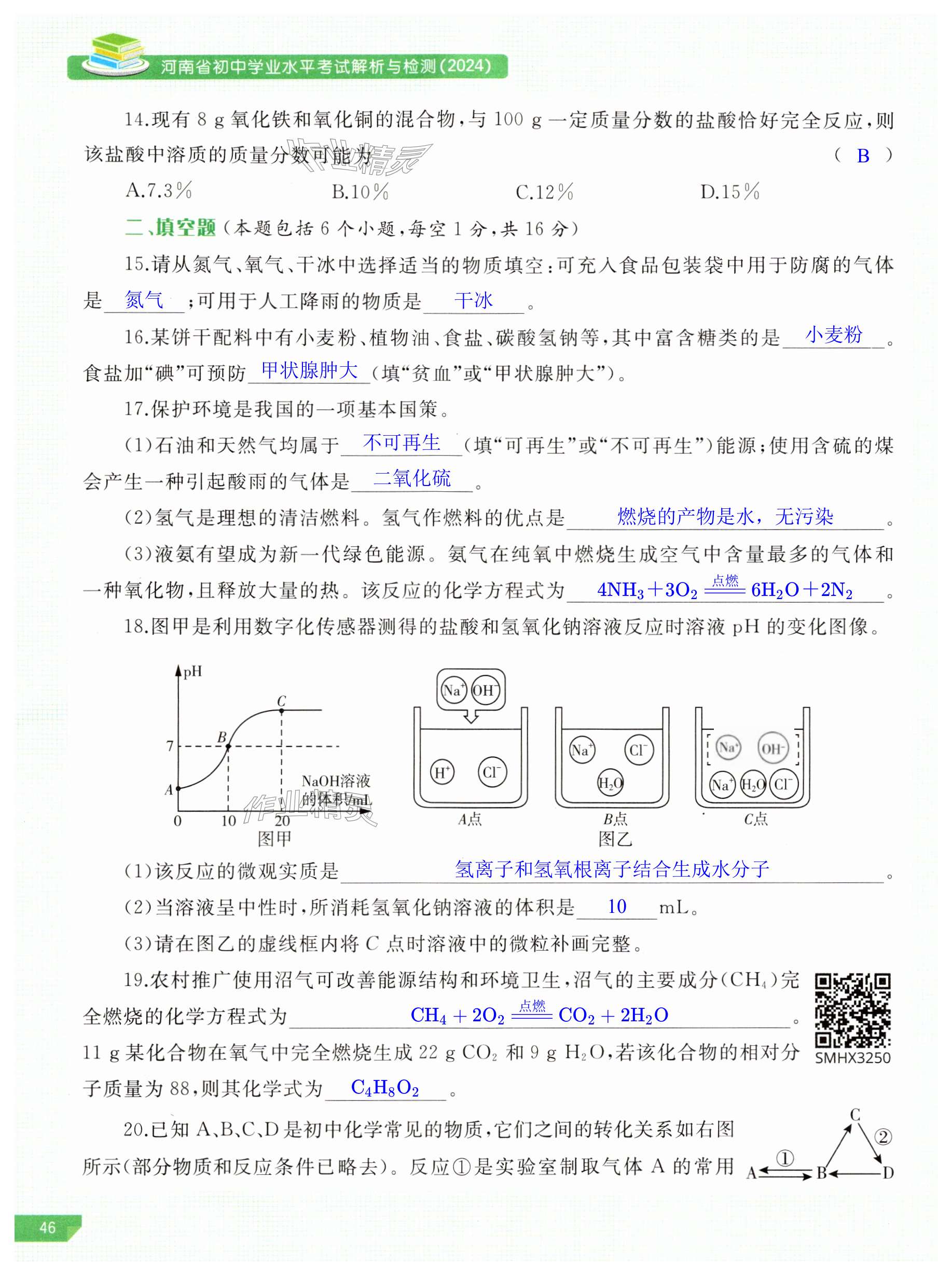 注:目前有些书本章节名称可能整理的还不是很完善,但都是按照顺序排列的,请同学们按照顺序仔细查找。练习册 2024年河南省初中学业水平考试解析与检测化学下册 答案主要是用来给同学们做完题方便对答案用的,请勿直接抄袭。