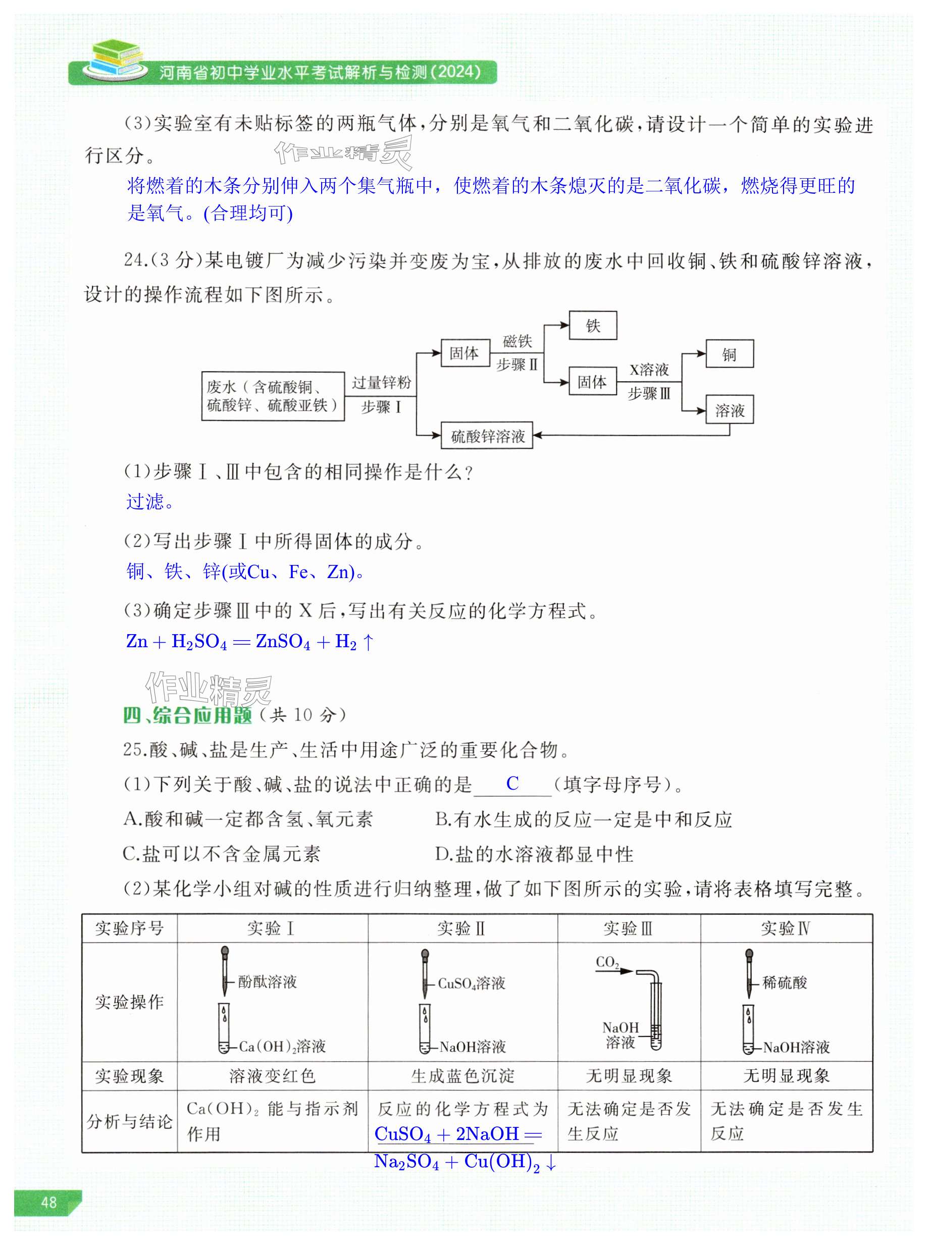 注:目前有些书本章节名称可能整理的还不是很完善,但都是按照顺序排列的,请同学们按照顺序仔细查找。练习册 2024年河南省初中学业水平考试解析与检测化学下册 答案主要是用来给同学们做完题方便对答案用的,请勿直接抄袭。